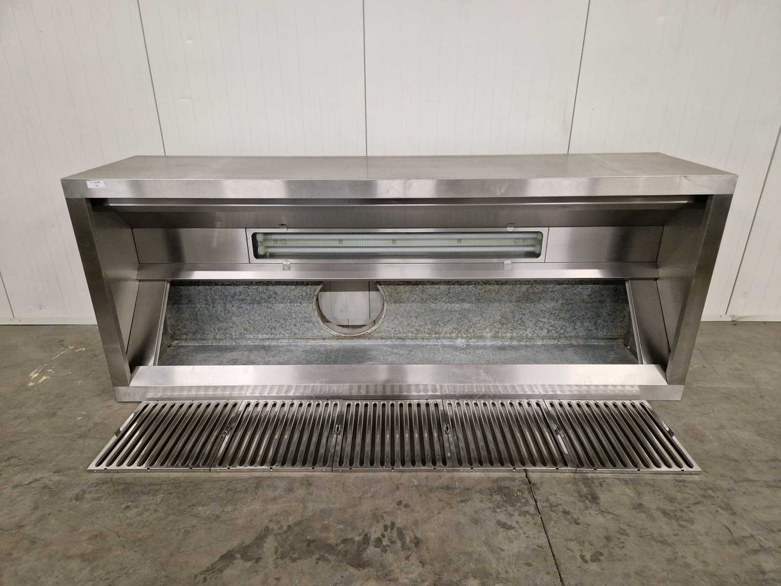 Afzuigkap, inductiekap, Doosmodel RVS 280 cm Robuuste, gelaste RVS afzuigkap in doosmodel-uitvoering, geschikt als inductiekap voor professionele keukens. Voorzien van 5 filters en interne verlichting voor optimaal zicht tijdens het koken. inclusief nieuwe motor. Afmetingen: 280 x 110 x 70 cm (BxDxH) Aansluiting afzuigkanaal: Ø 40 cm Aansluiting aanvoerkanaal: Ø 20 cm Model: Afzuigkap Product type: Doosmodel Lengte: 280cm Breedte: 110cm Hoogte: 70cm Materiaal: RVS