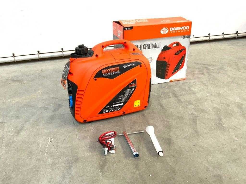 Uitgangen 1x 230V AC - 1x 12V DC 8A - USB 5V 1.0A/2.1A; Technische specificaties; Frequency 50Hz; Running watts 2000W; Max watts 2200W; AC current 8.7A; Max. Altitude 1000m; Performance Class G1; Quality class A; Max. Amb. Temp 40'c; Power factor 1.0; phase single; 5757 Merk: Daewoo Type: GDA2500IS Bouwjaar: 2023 Benzine: true Mobiel: true Handboek aanwezig: true Machinegewicht: 22kg