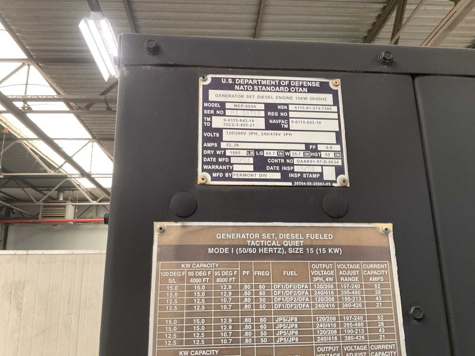 Merk: Fermont div Type: MEP-804A Bouwjaar: 2001 Serienummer: FZ58712 Diesel: true Type motor: Onan Aantal cilinders: 4 Motorvermogen (kW): 15kW Watergekoeld: true Mobiel: true Afgelezen urenstand: 4 Totale afmeting L: 3600mm Totale afmeting Breedte: 2150mm Totale afmeting Hoogte: 2250mm
