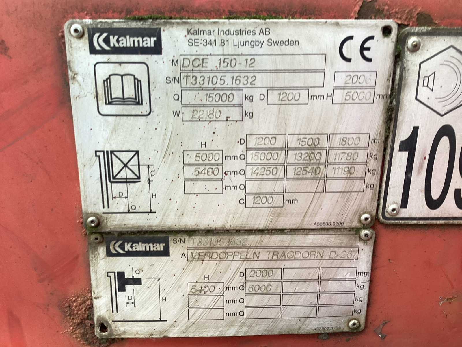 Volvo dieselmotor; 6 cilinder; motor loopt; machine rijd niet; Merk: Kalmar Type: DCE 150-12 Bouwjaar: 2010 Serienummer: T33105.1632 Brandstof: Diesel Mast: Duplex Soort band: Luchtbanden Aantal wielen: 4 Afgelezen urenstand: 24408 Hydraulisch verstelbare lepels: true Duplex mast: true Eigen gewicht: 22180kg Hefvermogen: 15000kg Lepellengte: 2400mm Max. hefhoogte: 5000mm Hefhoogte: 5000mm Luchtbanden: true Minimale doorrijhoogte: 4150mm