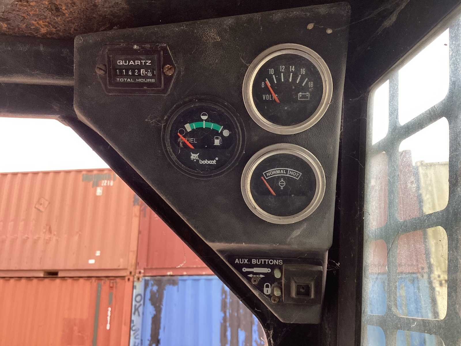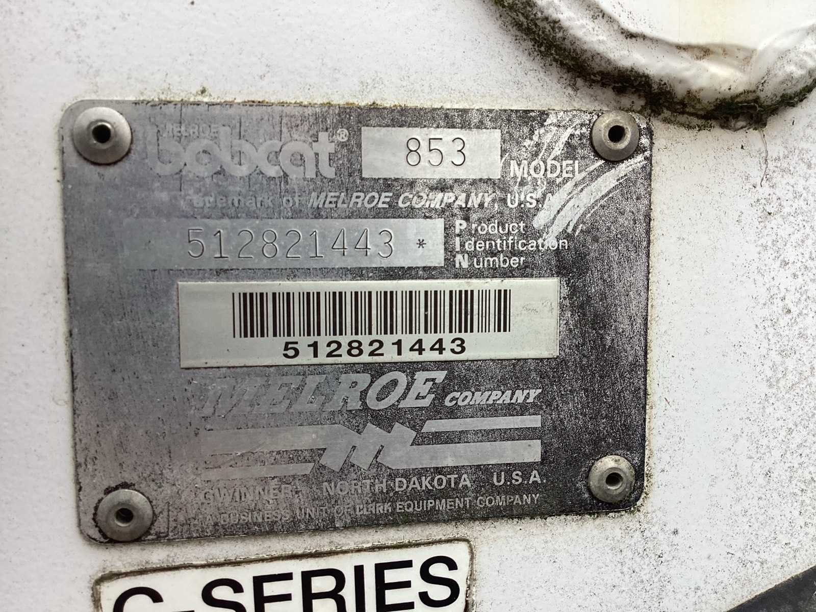 Geen sleutel; werking onbekend; Merk: Bobcat Type: 853 Serienummer: 512821443 Aantal cilinders: 4 Brandstof: Diesel Bandenmaat: 12-16,5 Totale afmeting L: 2600mm Totale afmeting Breedte: 1650mm Totale afmeting Hoogte: 2050mm