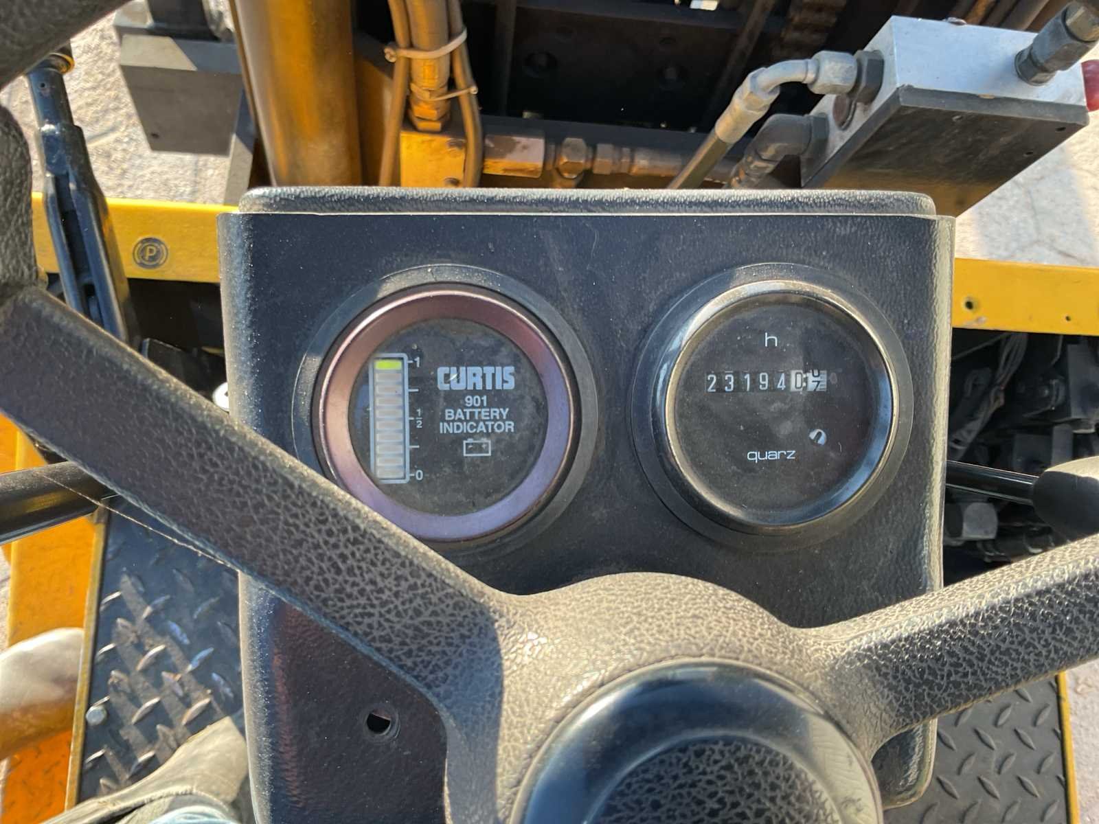 Merk: Yale Type: ERC50AKE E2415 Bouwjaar: 1996 Serienummer: 5003A00175T Brandstof: Elektrisch Mast: Triple Soort band: Volrubber banden Aantal wielen: 4 Afgelezen urenstand: 23194 Accu lader: true Free-lift: true Side-shift: true Triple mast: true Eigen gewicht: 9905kg Hefvermogen: 5000kg Lepellengte: 2200mm Hefhoogte: 5000mm Vol rubber banden: true Minimale doorrijhoogte: 2450mm