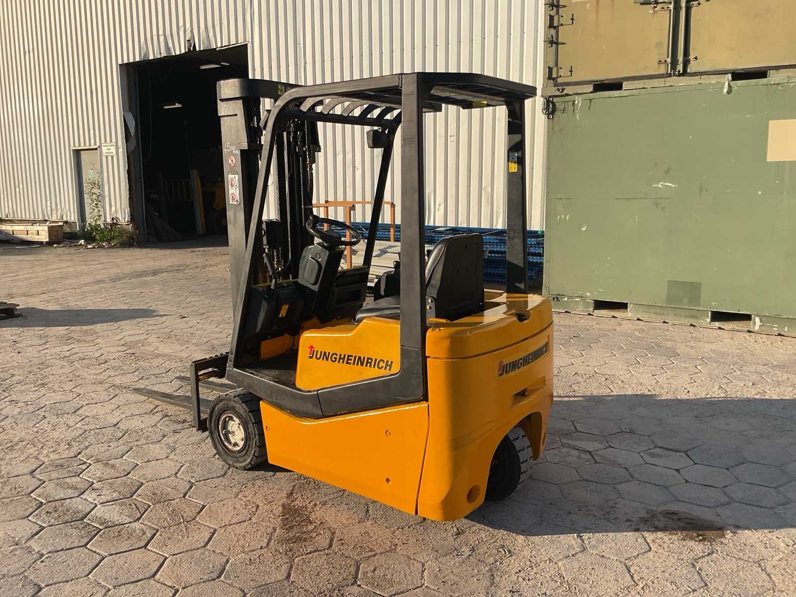 Merk: Jungheinrich Type: EFG-DF 400 Serienummer: EFG156005 Brandstof: Elektrisch Mast: Triple Soort band: Volrubber banden Aantal wielen: 3 Afgelezen urenstand: 8399 Free-lift: true Side-shift: true Triple mast: true Hefvermogen: 1500kg Lepellengte: 1000mm Hefhoogte: 4500mm Vol rubber banden: true Minimale doorrijhoogte: 2050mm