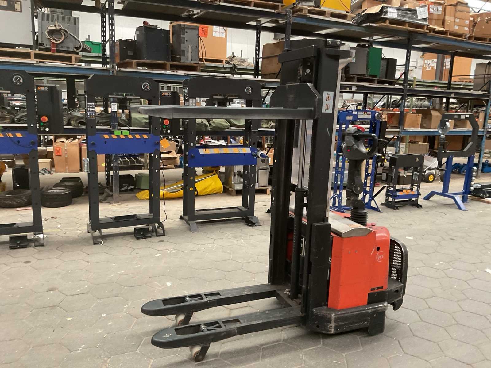 Merk: BT Type: SWE120L Bouwjaar: 2008 Serienummer: 6038182 Hefvermogen: 1200kg Hefhoogte: 1400mm Lepellengte: 1000mm Afgelezen urenstand: 3908 Minimale doorrijhoogte: 1900mm Meerij stapelaar: true
