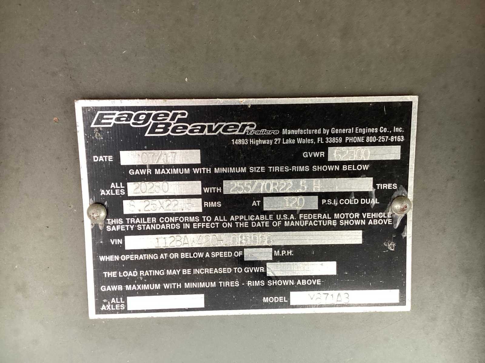 Laadvloerhoogte 145 cm; Merk: Eager Beaver Type: M871A3 Bouwjaar: 2017 Chassisnummer VIN: 112BAW420HL081986 Aantal assen: 2 Totale afmeting L: 12600mm Totale afmeting Breedte: 2440mm No self drive export!: true