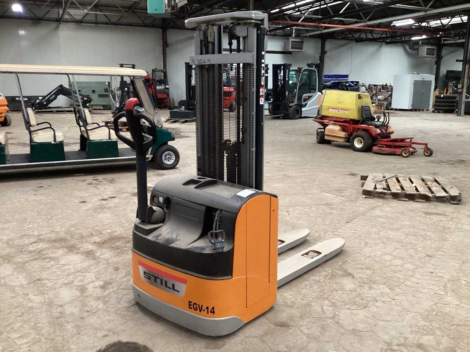 Geen lader; Merk: Still Type: EGV14 Bouwjaar: 2009 Serienummer: 710248011714 Hefvermogen: 1400kg Hefhoogte: 4252mm Lepellengte: 1190mm Eigen gewicht: 1100kg Minimale doorrijhoogte: 1950mm