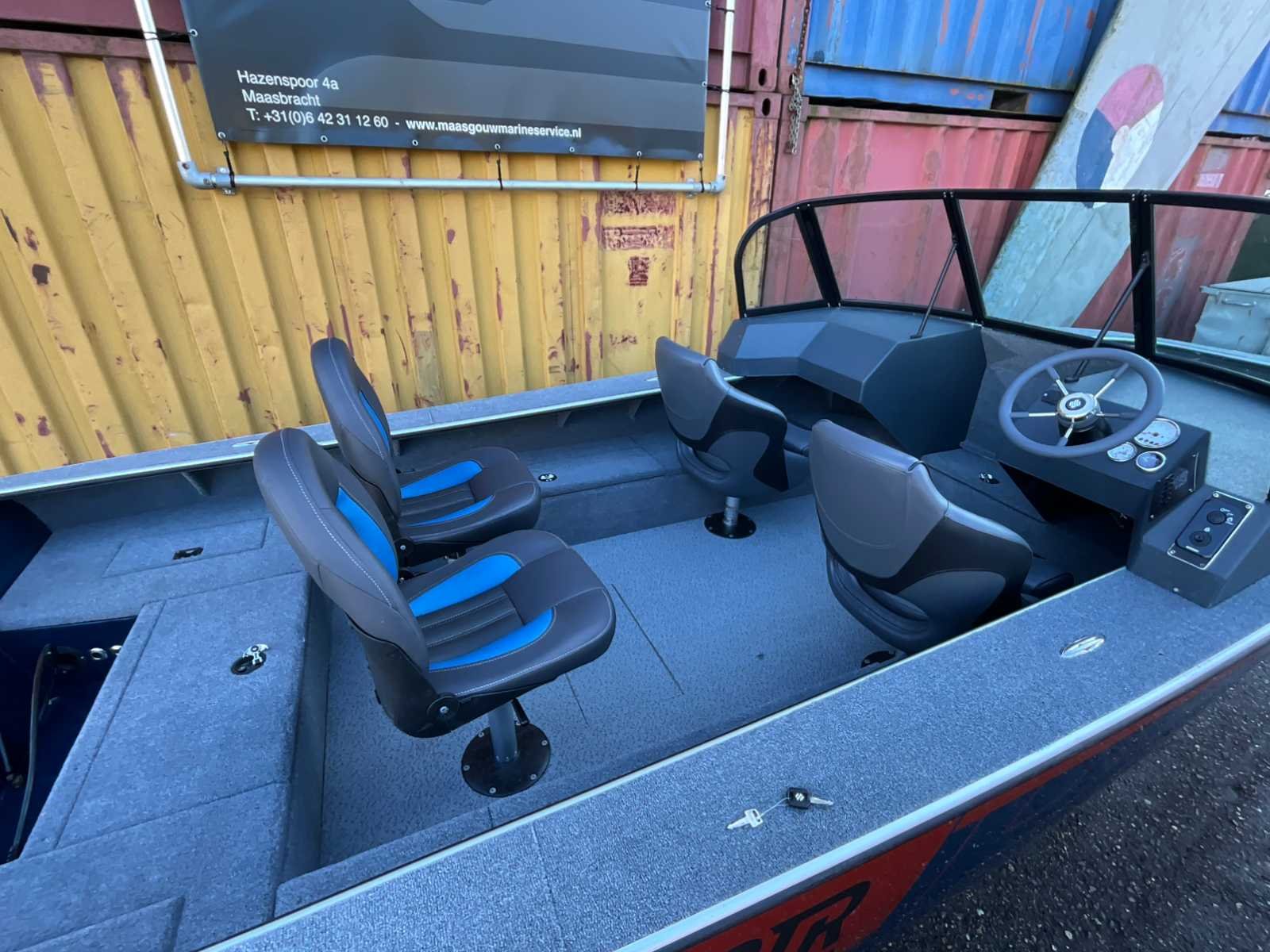 Aluminium welded fishing boat,demo boat 2024, deze boot is volledig gelast uit 5mm zoutwaterbestendig aluminium en werf gebouwd,CE toelating categorie C max 150pk outboard , demo boot slechts enkele vaaruren. Voorzien van dubbele windshield met raptorlak gecoat. Stoffering van Dorset Marine Carpet USA, volledige historie boot bij ons bekend Fully welded fishing boat 5mm aluminium saltwater proof, CE catagory C, demo boat 2024 ferry strong and good stability, build with cosa materiaal, 100% wood free. Merk: NTRCPTR Type: 540 Rompmateriaal: Aluminium Brandstof: Benzine Bouwjaar: 2024 Lengte over alles: 540m Breedte formaat: 230m Eigen gewicht: 650kg Afgelezen urenstand: 25hr