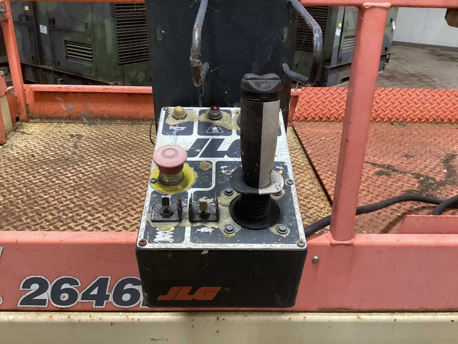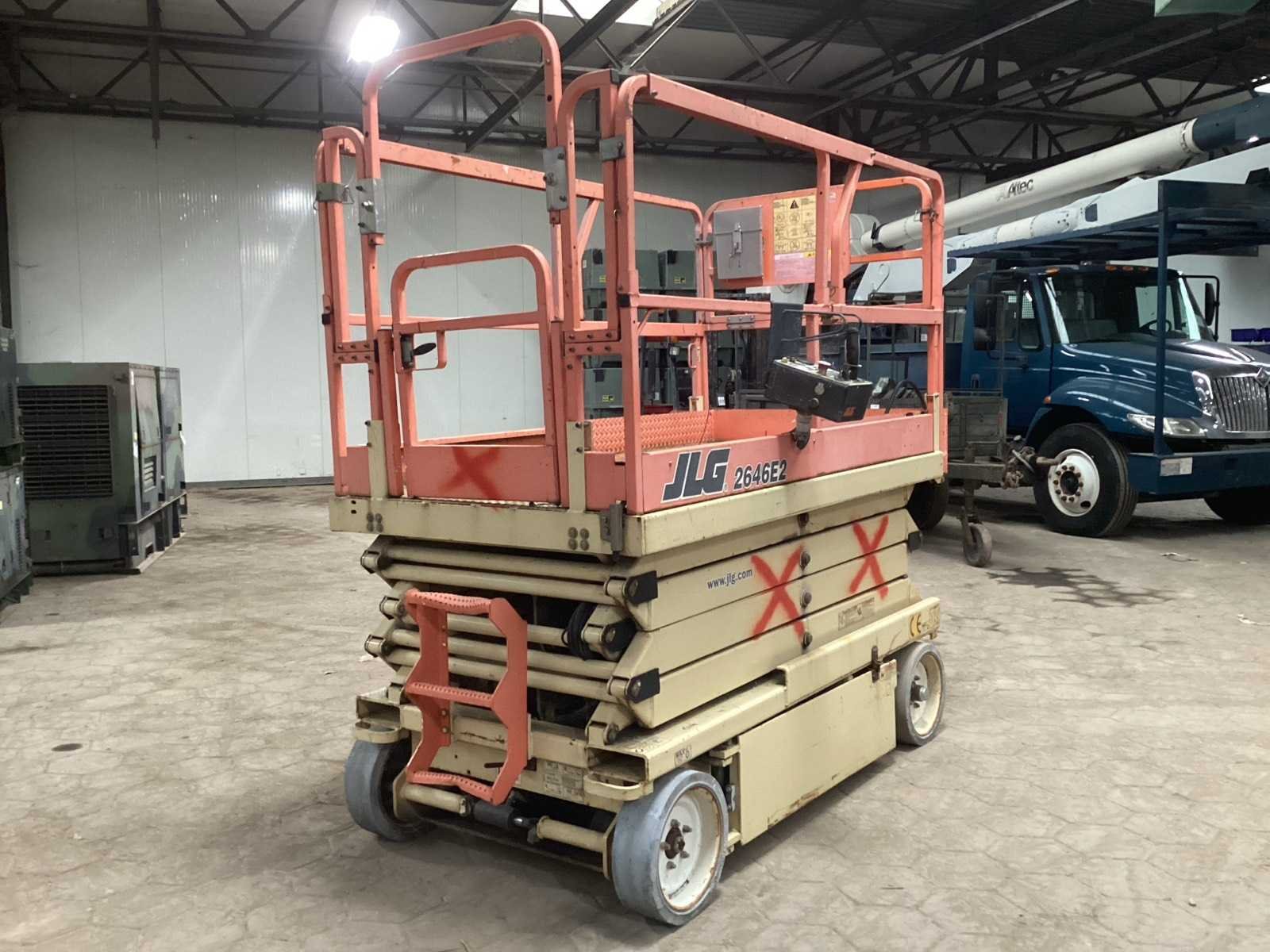Geen sleutel werking onbekend; Merk: JLG Type: 2646E2 Elektrisch: true Schaarhoogwerker: true Plateau afm. l: 2170mm Plateau afm. b: 1130mm Totale afmeting L: 2200mm Totale afmeting Breedte: 1150mm Totale afmeting Hoogte: 2220mm