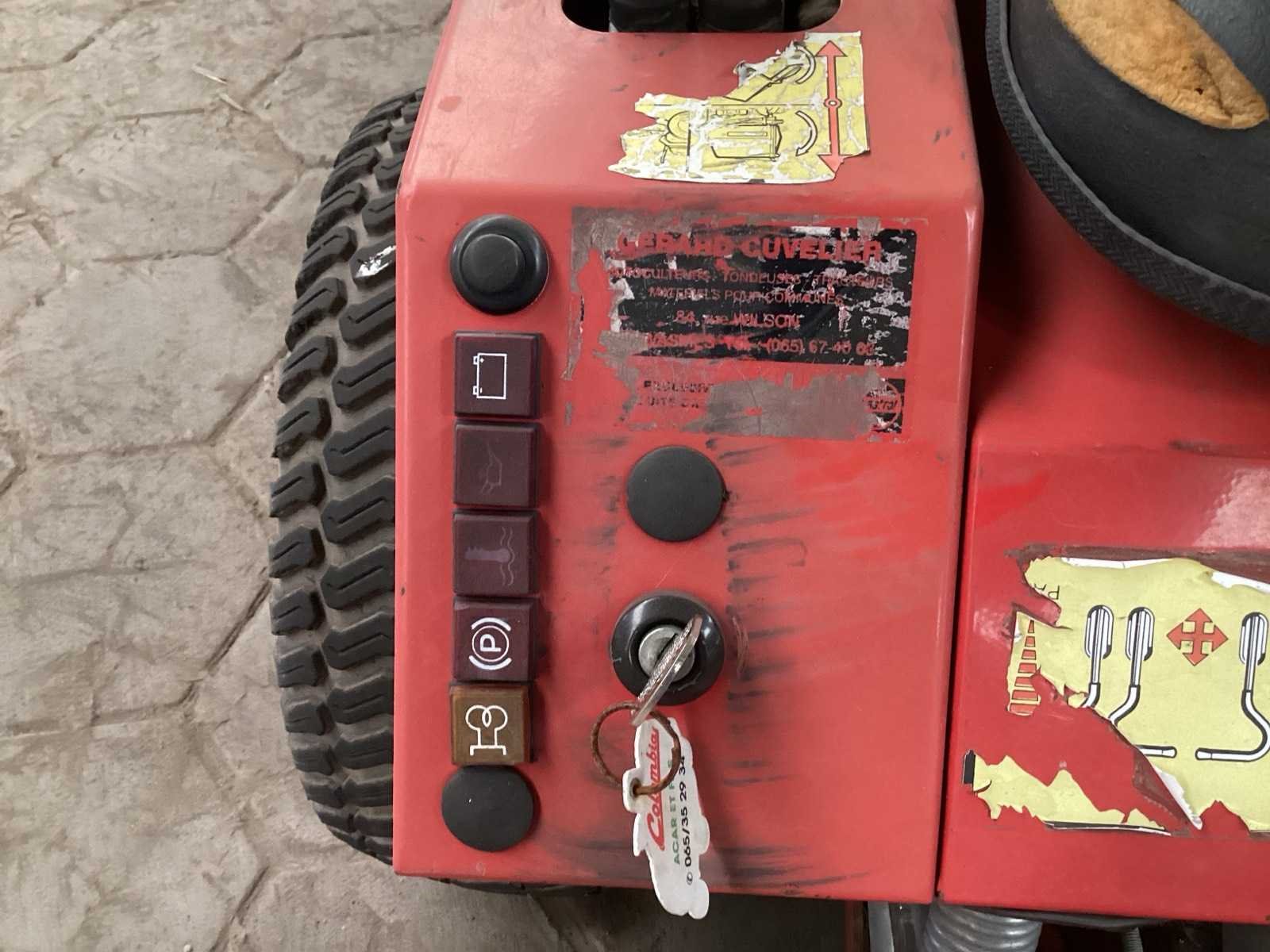 Kubota dieselmotor; 3 cilinder; Merk: Gianni Ferrari Type: GF 700 Bouwjaar: 2001 Serienummer: 160065 Werkbreedte: 1100mm Zitmaaier: true Brandstof: Diesel Motorvermogen (kW): 14.6kW Opvang container: true Eigen gewicht: 700kg Totale afmeting L: 2600mm Totale afmeting Breedte: 1050mm Totale afmeting Hoogte: 1400mm
