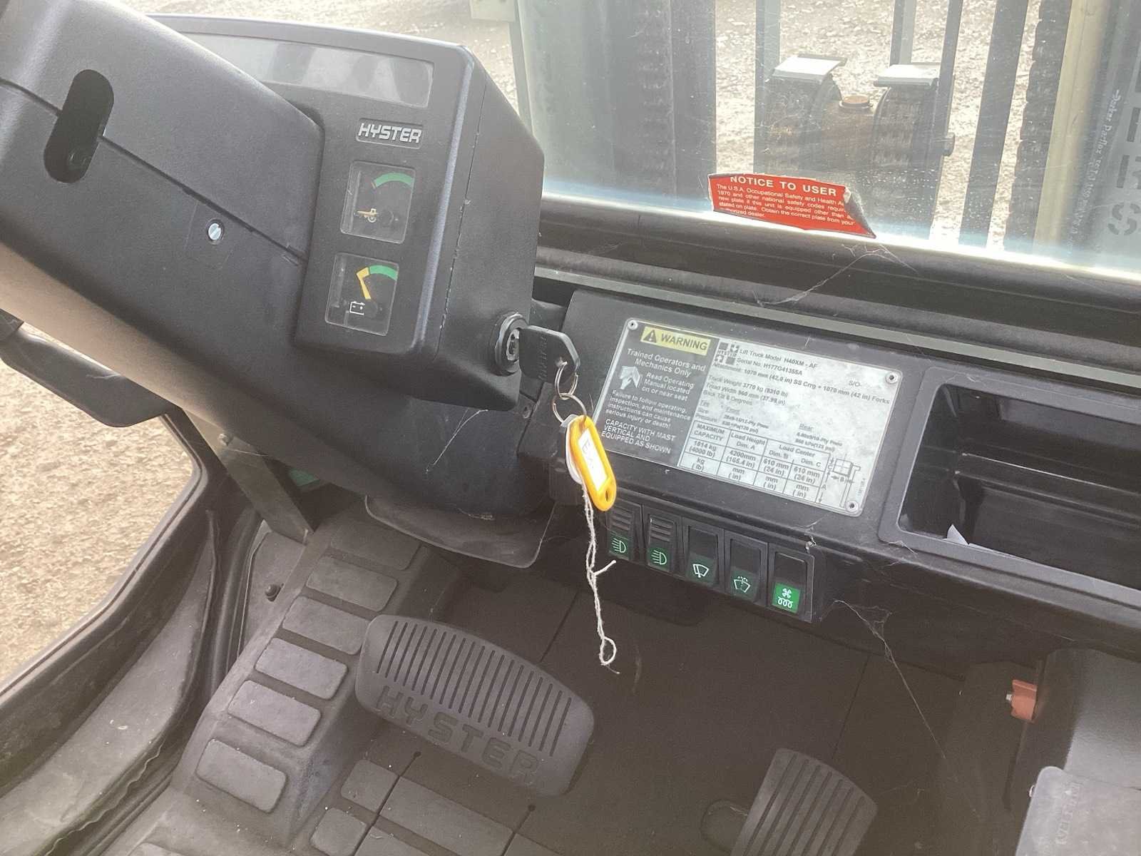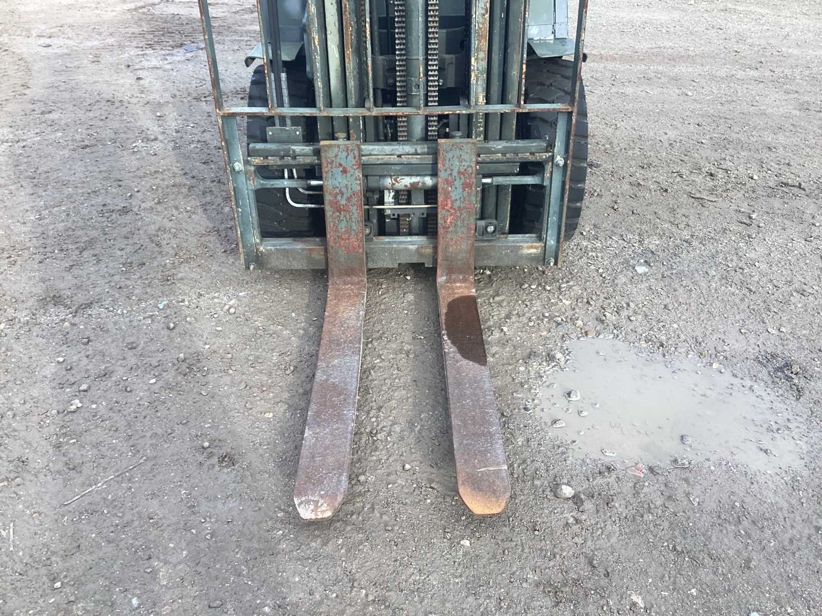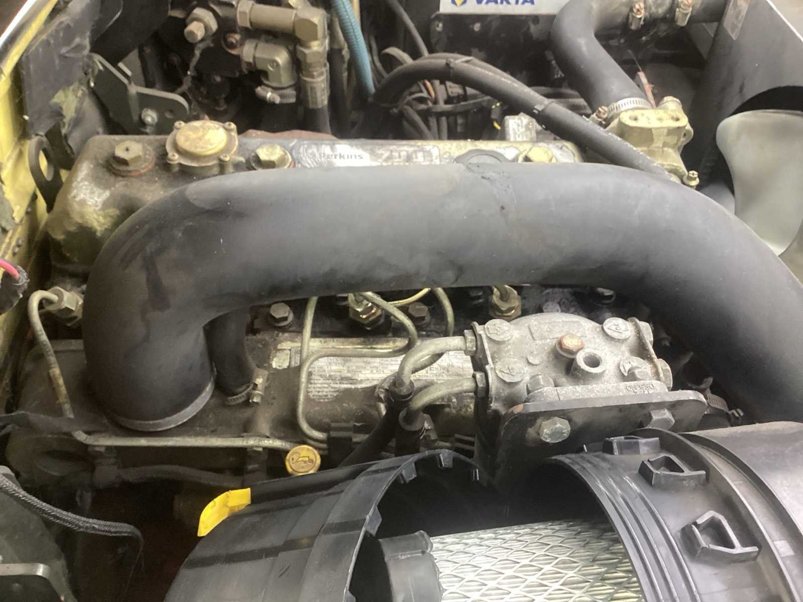 Perkins dieselmotor; 4 cilinder; Merk: Hyster Type: H40XM Serienummer: H177G41355A Brandstof: Diesel Mast: Triple Soort band: Luchtbanden Aantal wielen: 4 Free-lift: true Side-shift: true Triple mast: true Eigen gewicht: 3770kg Hefvermogen: 1800kg Lepellengte: 1050mm Luchtbanden: true Minimale doorrijhoogte: 2200mm Diesel: true