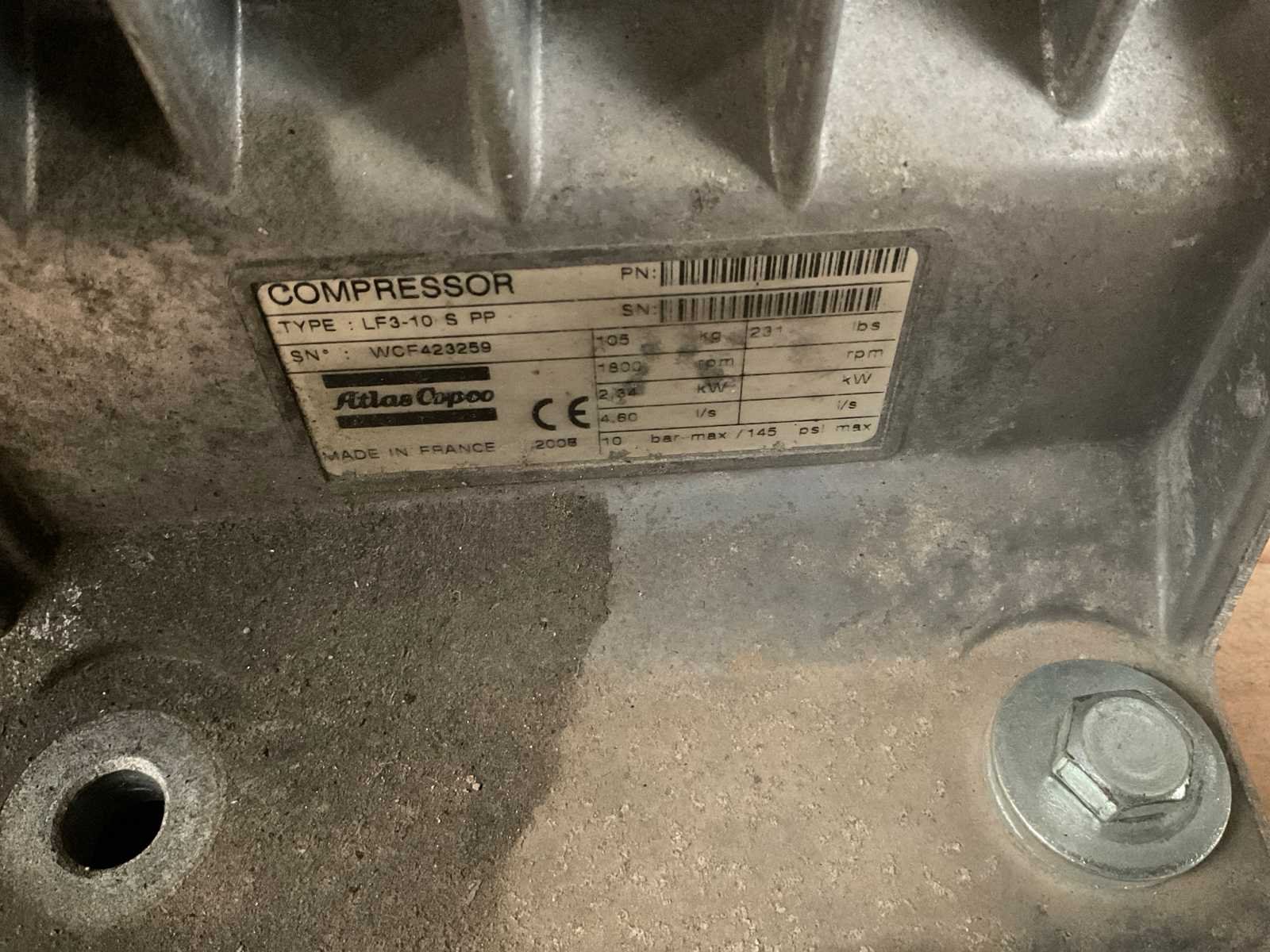 Merk: Atlas Copco Type: LF3-10 S PP Bouwjaar: 2008 Serienummer: WCF423259 Capaciteit.: 10bar Eigen gewicht: 105kg