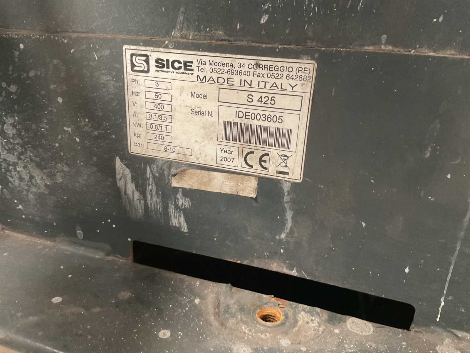 Merk: Sice Type: S425 Bouwjaar: 2007 Serienummer: IDE003605 Eigen gewicht: 240kg