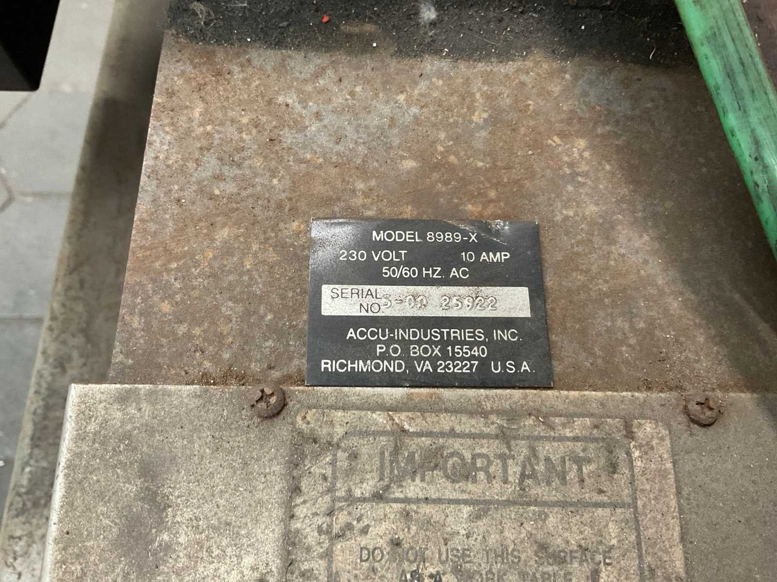 Merk: Accu-turn Type: 8989-X Serienummer: 5-00 25922 Aansluiting: 230V Totale afmeting L: 1200mm Totale afmeting Breedte: 1100mm Totale afmeting Hoogte: 1800mm