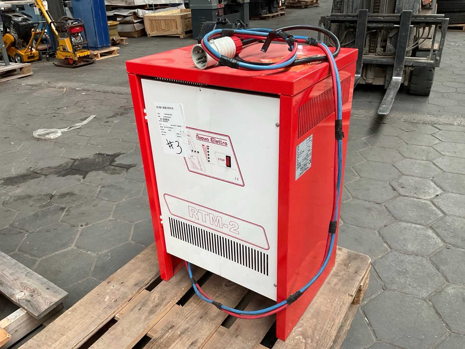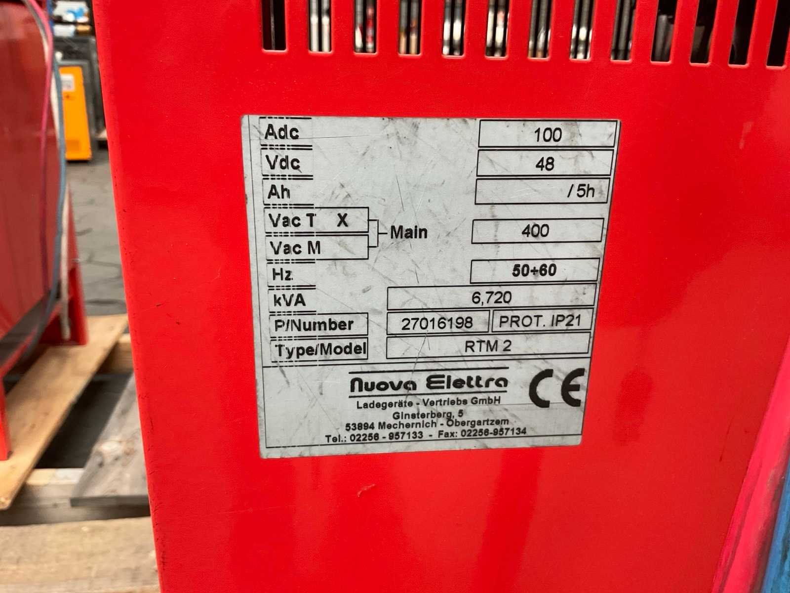 Merk: Nuova Elettra Type: RTM 2 Serienummer: 27016198 Laadstroom: 100A Aansluiting: 48V