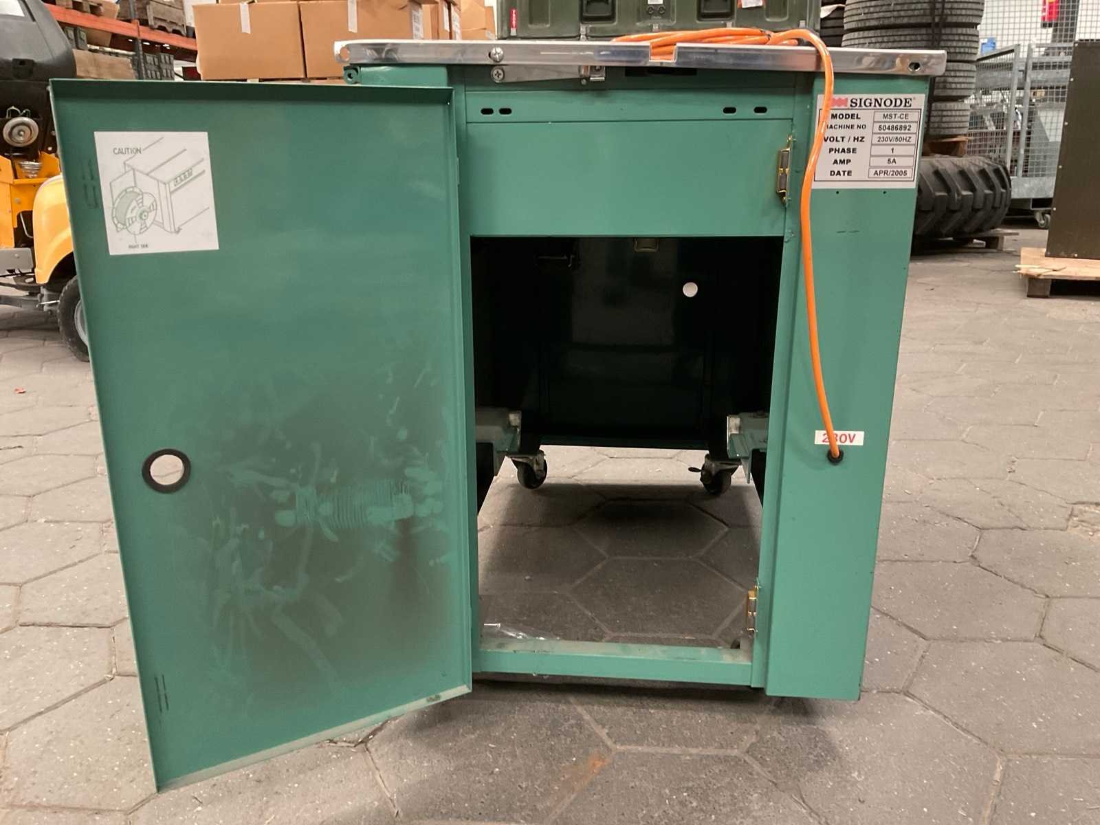 Merk: Signode Type: MST-CE Bouwjaar: 2005 Serienummer: 50486892 Verrijdbaar: true Aansluiting: 230V Totale afmeting L: 900mm Totale afmeting Breedte: 590mm Totale afmeting Hoogte: 790mm