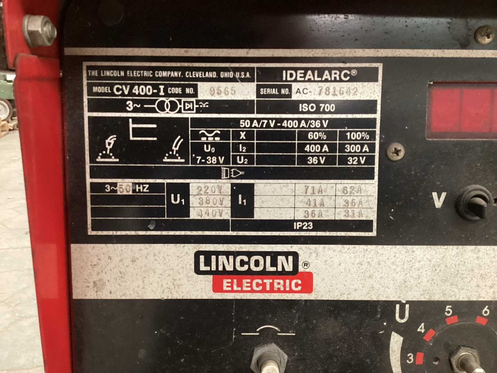 Merk: Lincoln Type: CV 400I Serienummer: 781642 Mig type: true Aansluiting: 380V