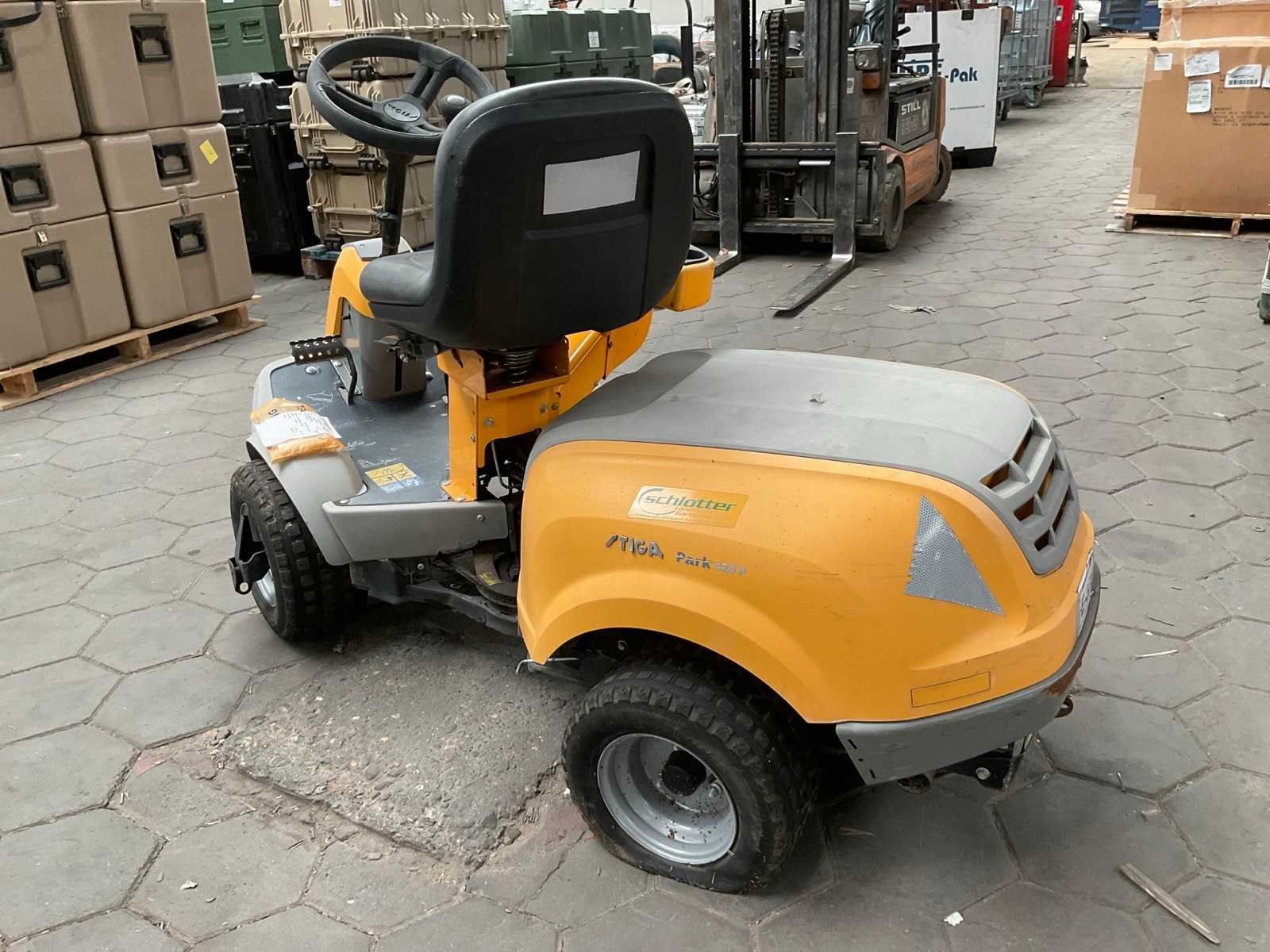 Maaidek en onderdelen op pallet; Merk: Stiga Park 420P Type: P901 CH Bouwjaar: 2015 Zelfrijdend: true Benzinemotor: true Eigen gewicht: 203kg