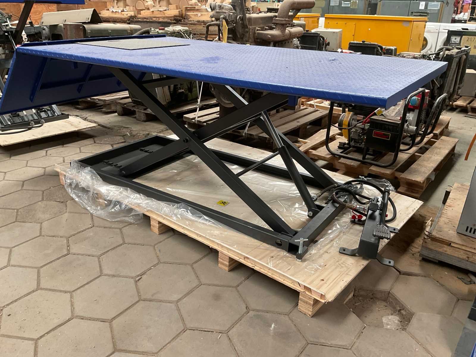 Hydraulisch en pneumatisch; Merk: Mammuth Hefhoogte: 82cm Type: ML75HA Schaarhefbrug: true Capaciteit.: 675kg Baanbreedte: 1190mm Eigen gewicht: 174kg