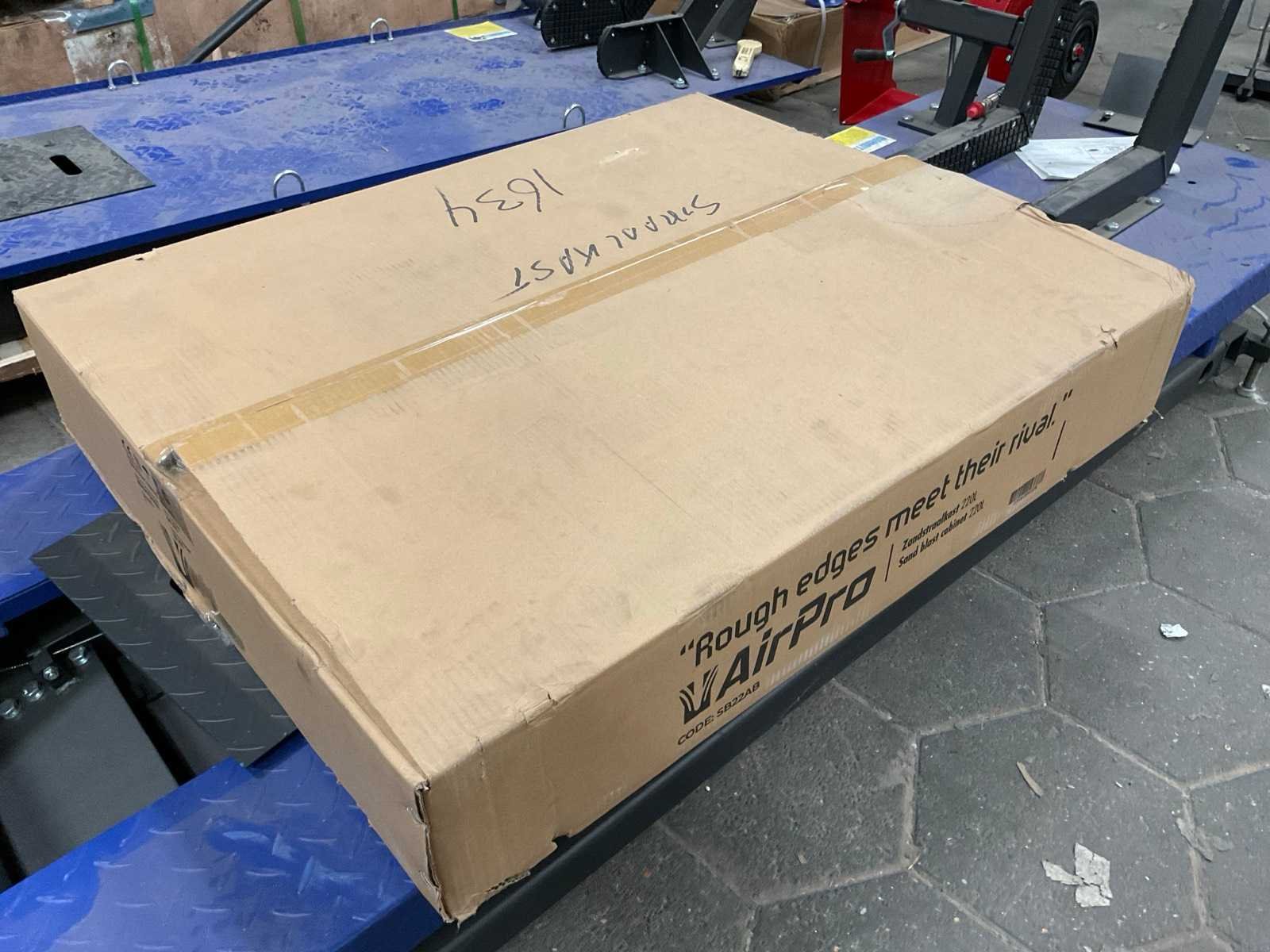 In doos Merk: AirPro Type: SB22AB Zand: true Machinegewicht: 48kg Afmeting l: 8950mm Afmeting b: 730mm Afmeting h: 1950mm