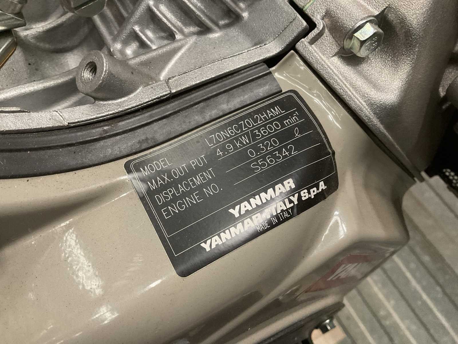 Merk: Yanmar Type: L70N6CZ0L2HAML Motorvermogen (kW): 4.9kW Toerental bereik: 3600rpm Aantal cilinders: 1