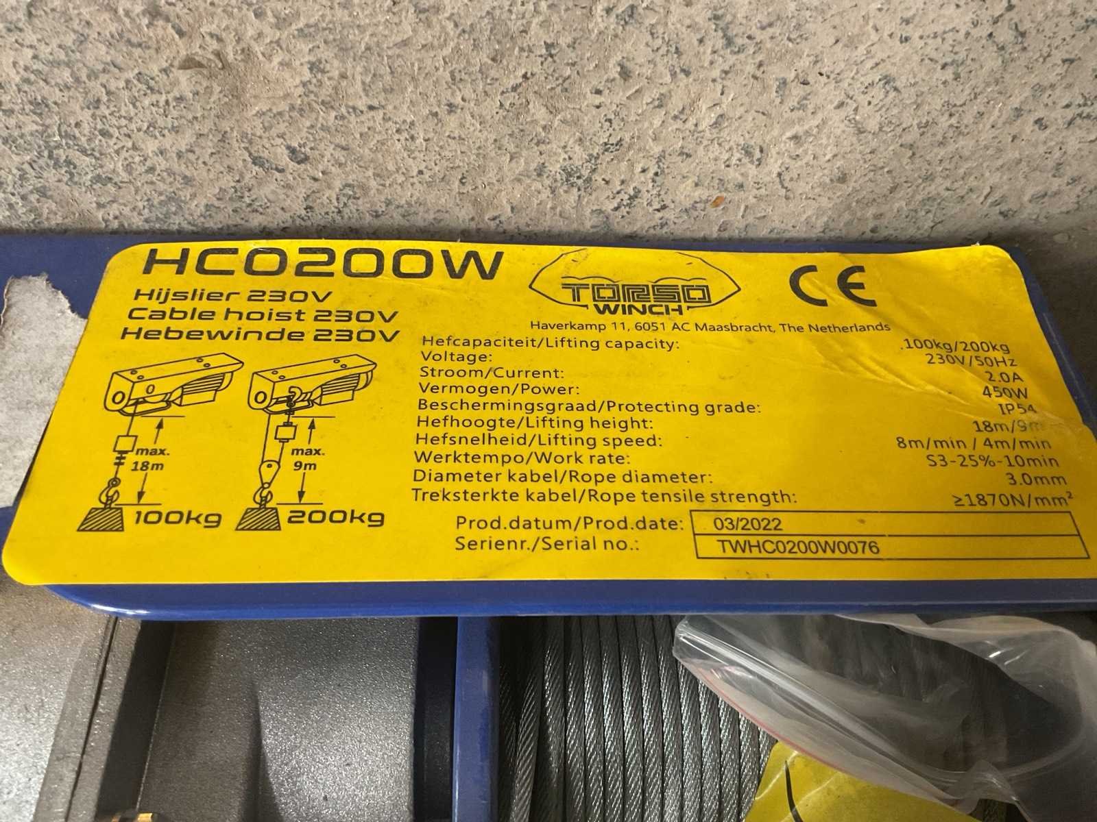 Merk: Torso Type: HC0200W Hijsvermogen: 200kg Max. hefhoogte: 9m