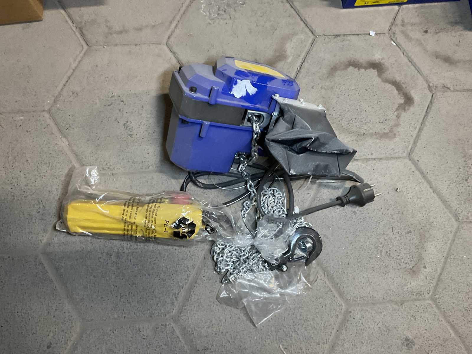 Merk: Torso Type: ECB0150 Bouwjaar: 2021 Hijsvermogen: 150kg Max. hefhoogte: 3m Aansluiting: 230V