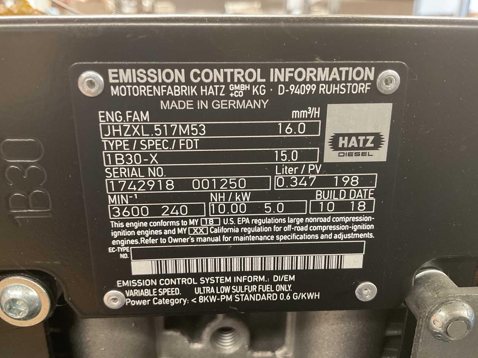 HATZ dieselmotor Merk: Bauer Type: JRII-D Bouwjaar: 2019 Vermogen: 5kW