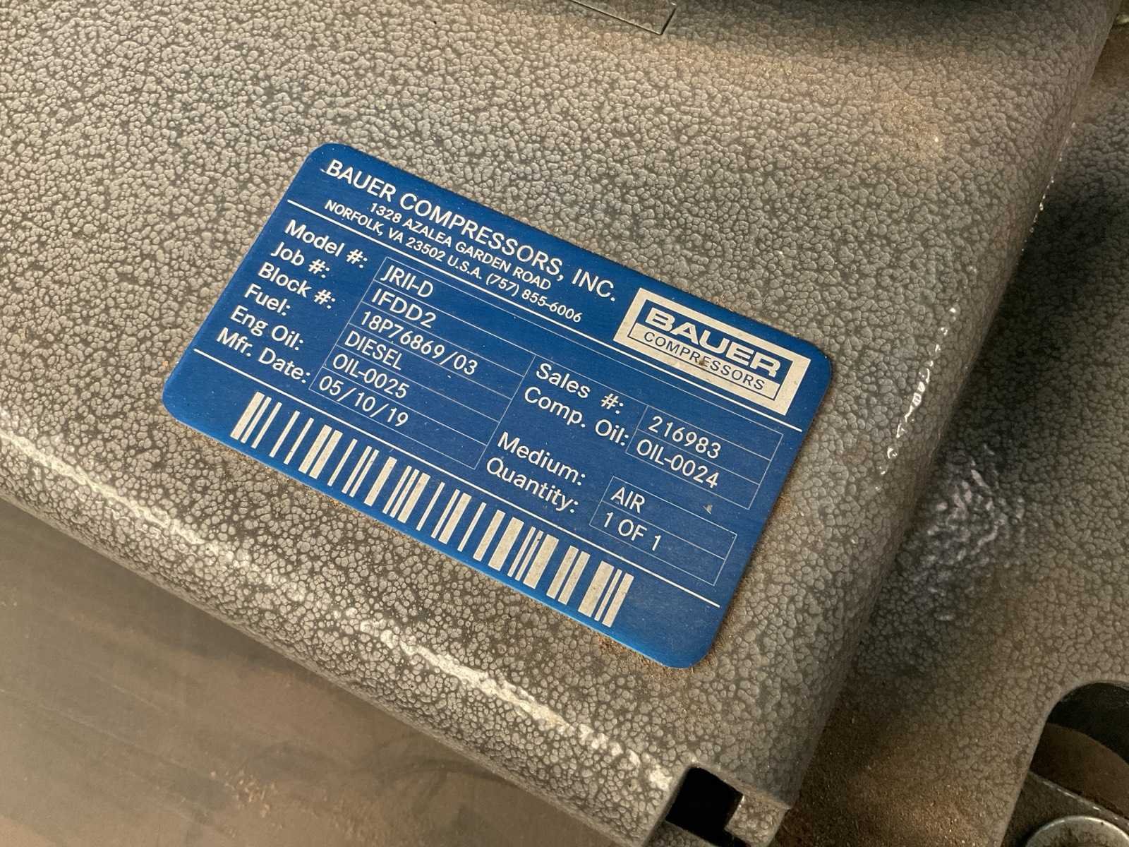 2019 bauer jrii-d luchtcompressor