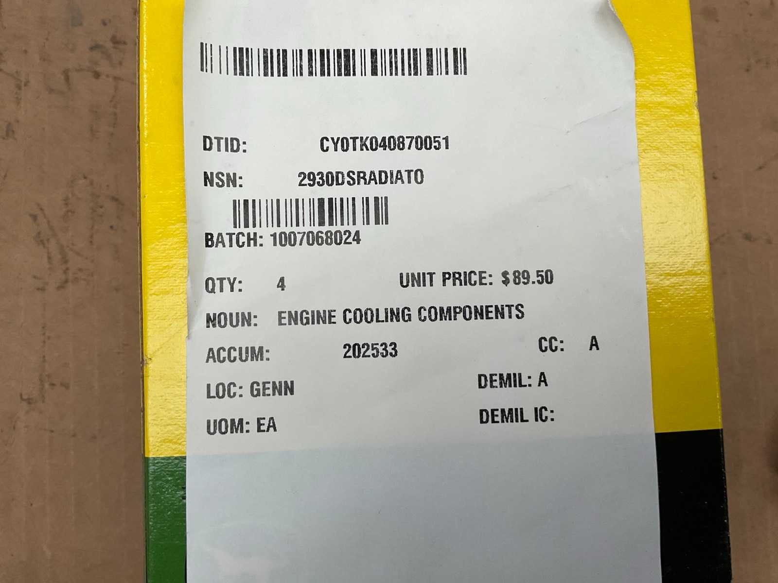 John deere miu802053 engine cooling components (2x)