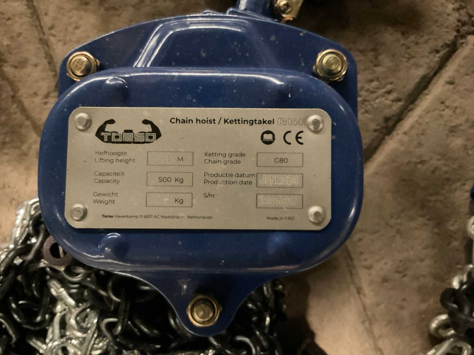 Merk: Torso Type: CB05C Bouwjaar: 2024 Hijsvermogen: 500kg Max. hijshoogte: 3m Eigen gewicht: 7kg