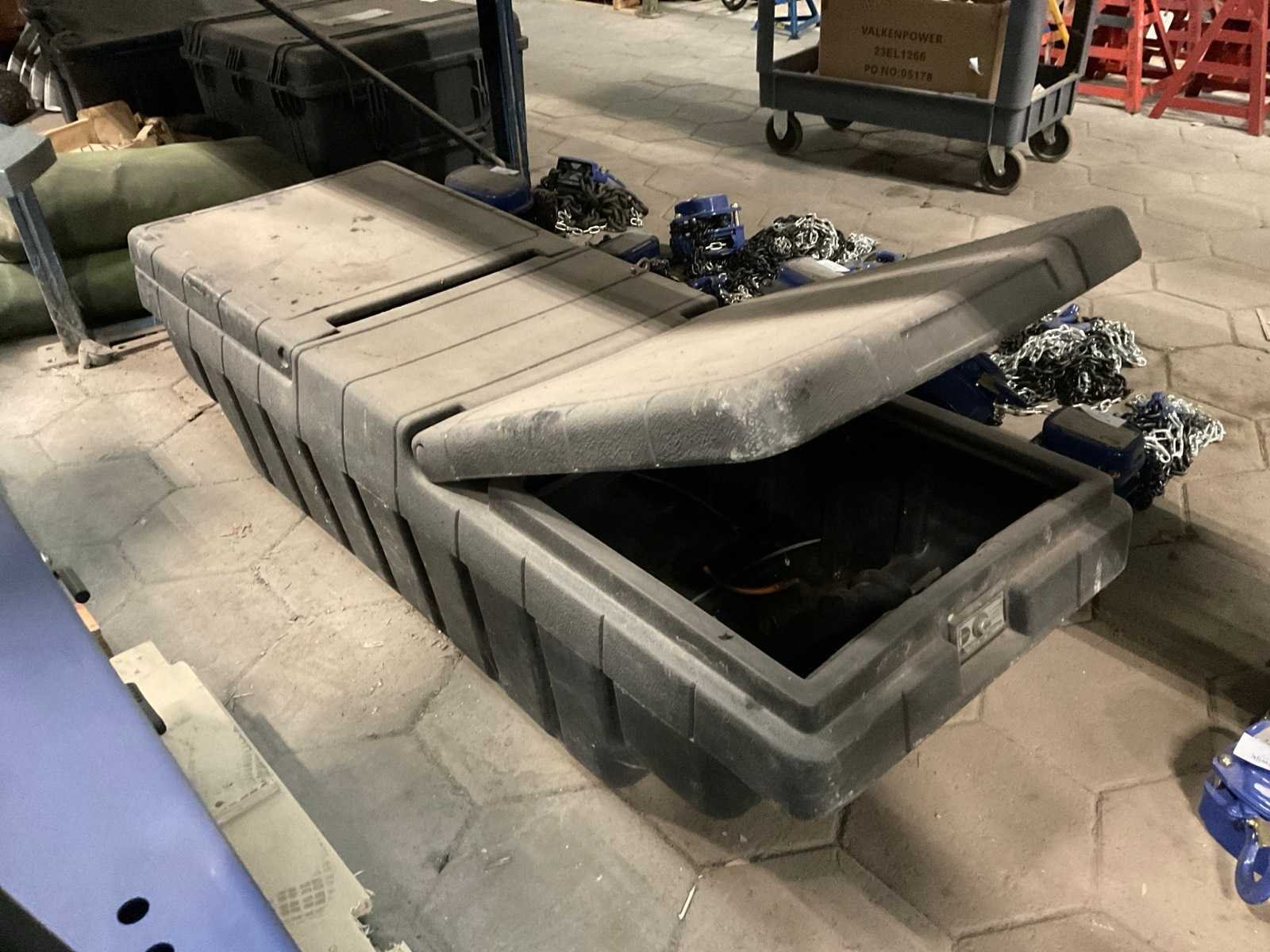 Geen sleutel;1 deksel is op slot; Merk: Delta Kunststof: true Met deksel: true Totale afmeting L: 1500mm Totale afmeting Breedte: 540mm Totale afmeting Hoogte: 600mm