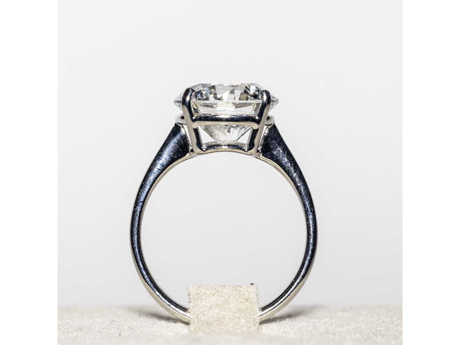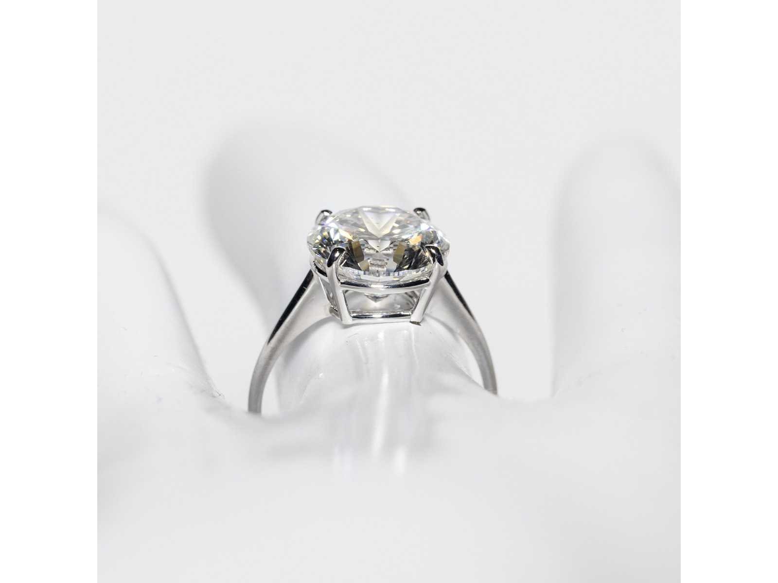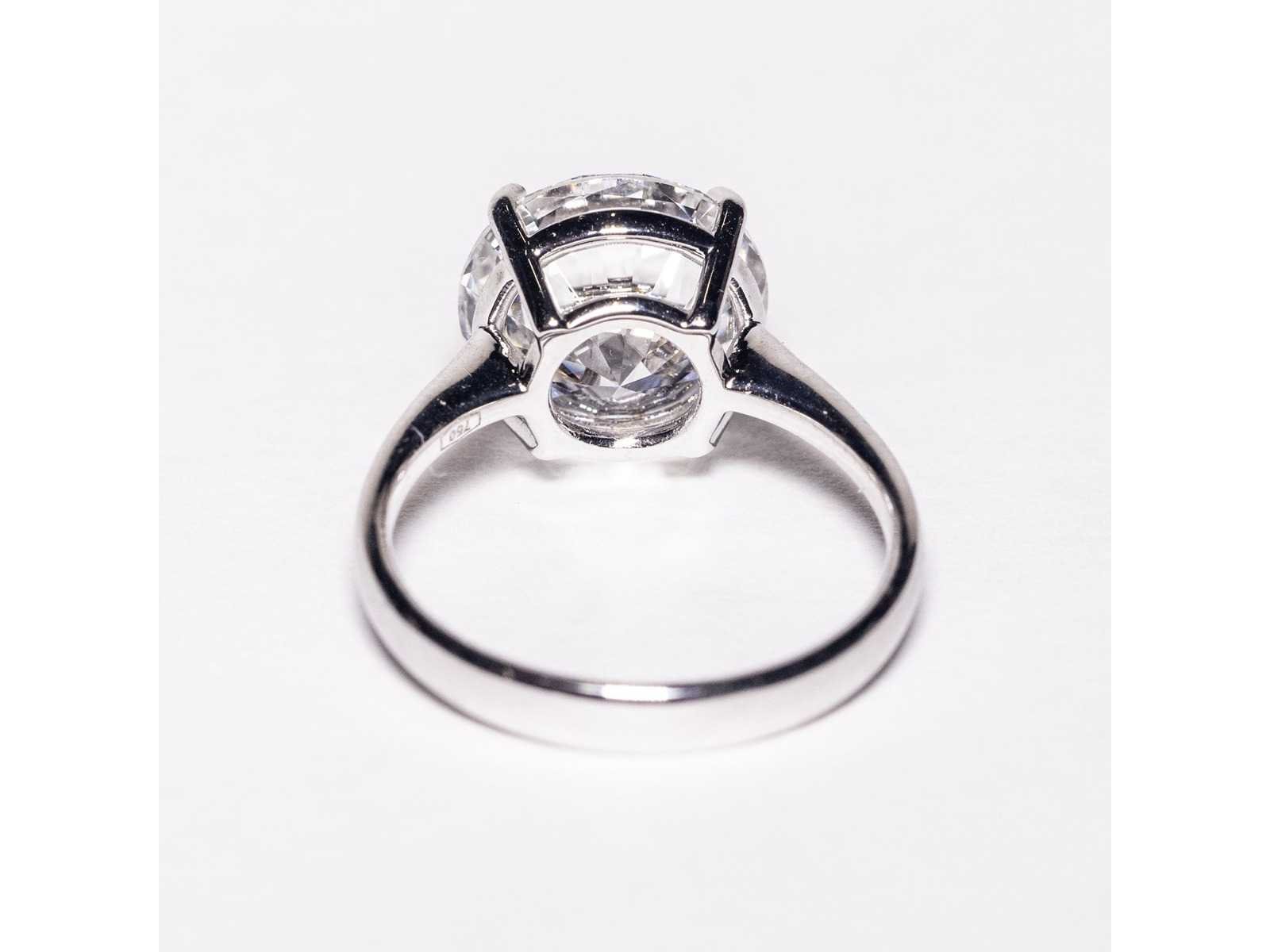 Laboratoriumrapport IGI: LG687502278 Ring in wit 18KT Ringmaat 14/54/6-1/2 Diamantvorm: rond briljant Karaat: 5,05 ct Kleur: F Fluorescentie: Geen Zuiverheid: VS1 Totaalgewicht van de ring: 3,4 g Bezichtiging op afspraak Materiaal: Witgoud Ringmaat : 54 Certificaat: Ja Lage schatting: 11200€