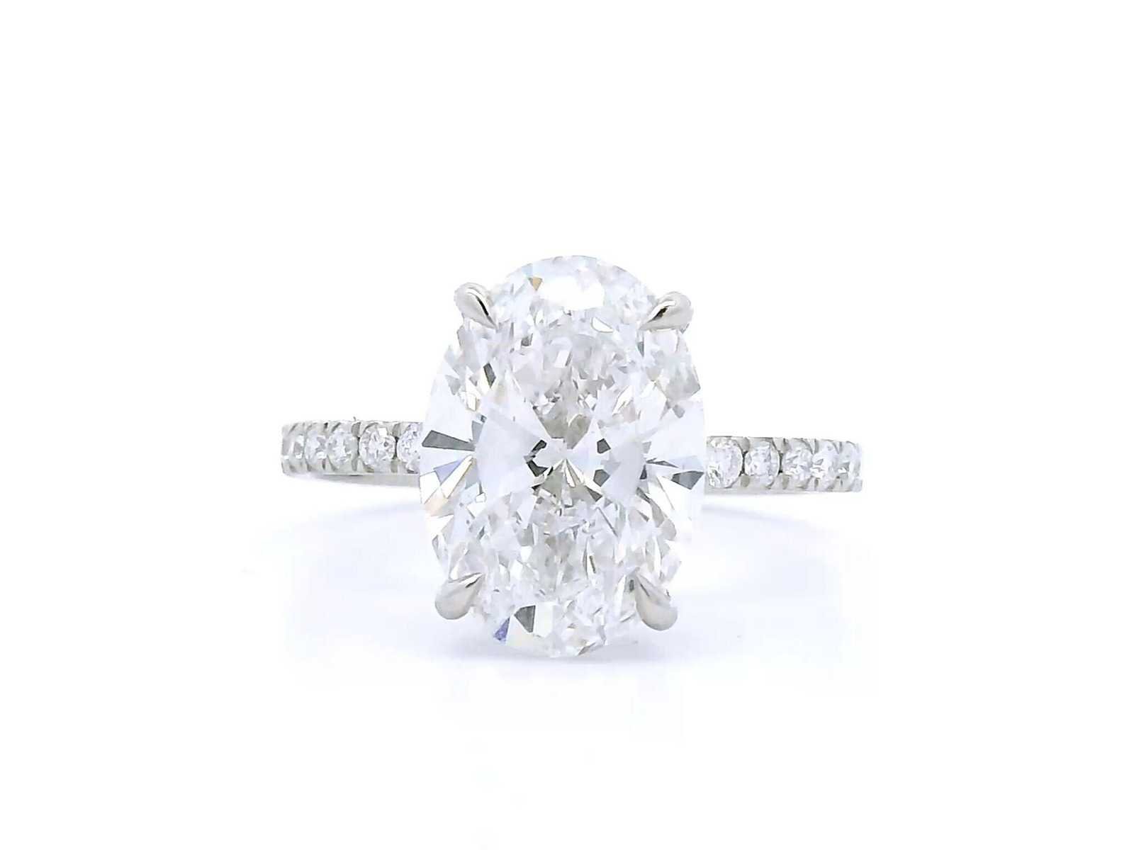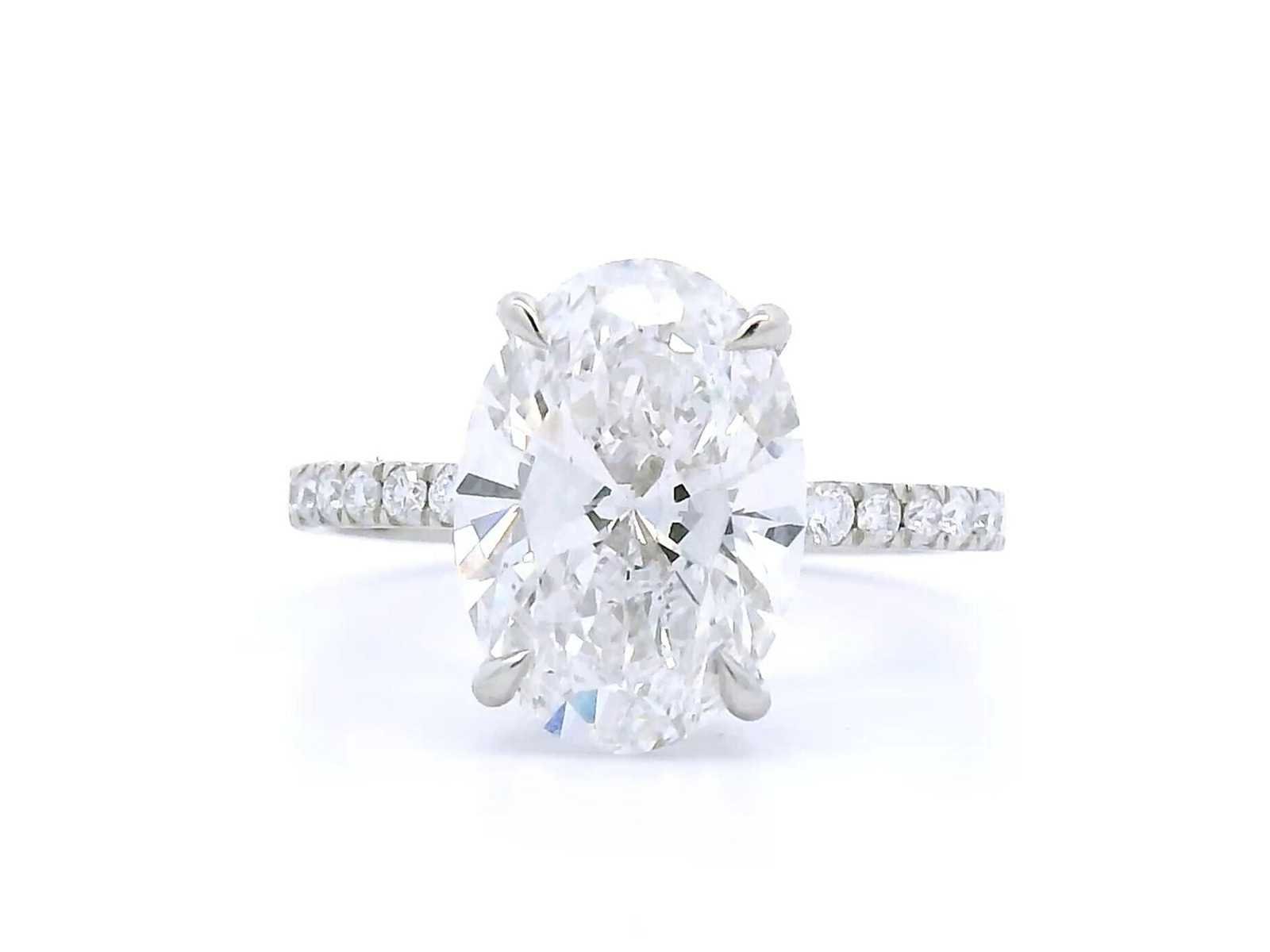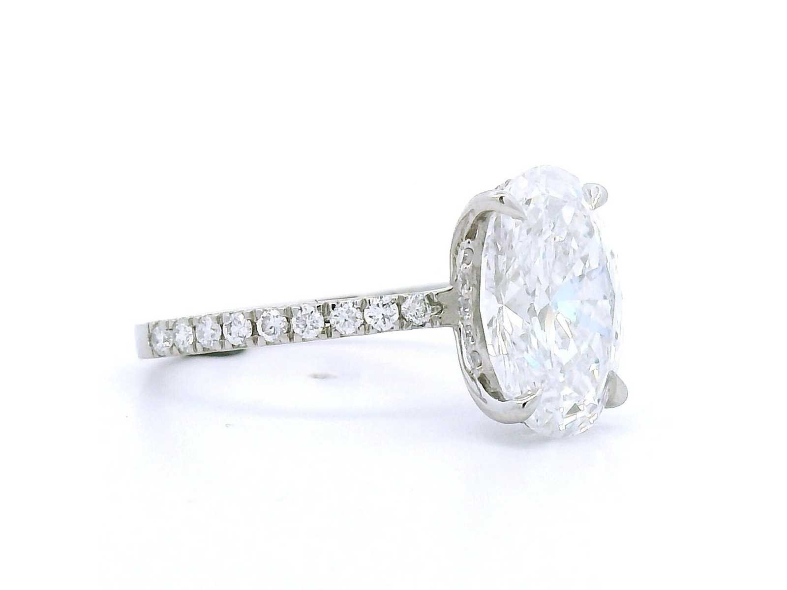 Exclusieve 18K witgouden ring Ringmaat - 55 EU / 15 IT / 7,25 US Rapportnummer IGI: LG680503444 Vorm: Ovaal Brilliant Gewicht van de hoofdsteen : 3,57 CT Kleur: D Helderheid: VS1 Symmetrie: uitstekend Omringende stenen - 0.27 Totaal gewicht in caraten - 3.844 caraten Totale ringgewicht: 3,78 gram Bezichtiging op afspraak Materiaal: Platina Ringmaat : 55 Certificaat: Ja Lage schatting: 5400€