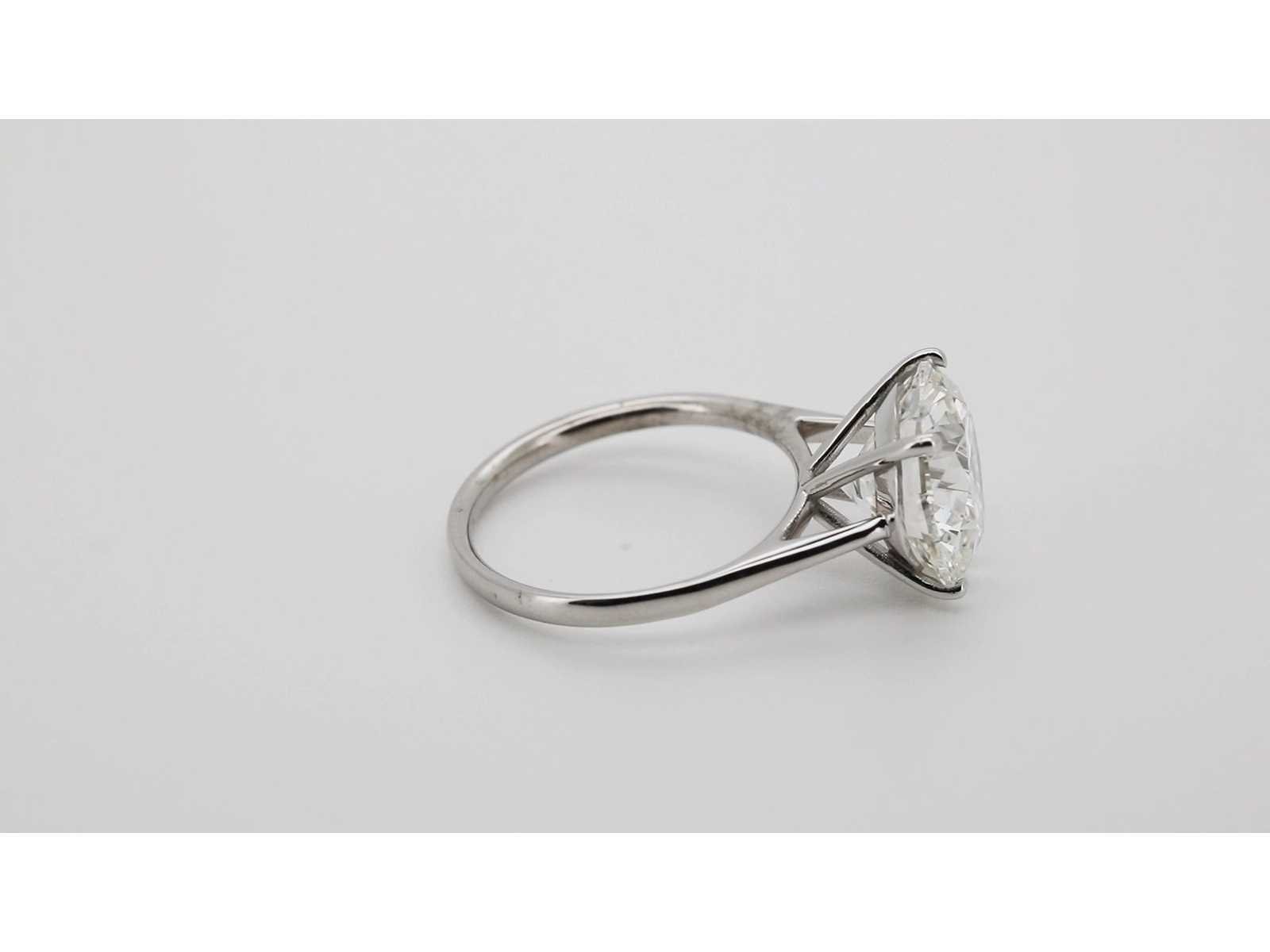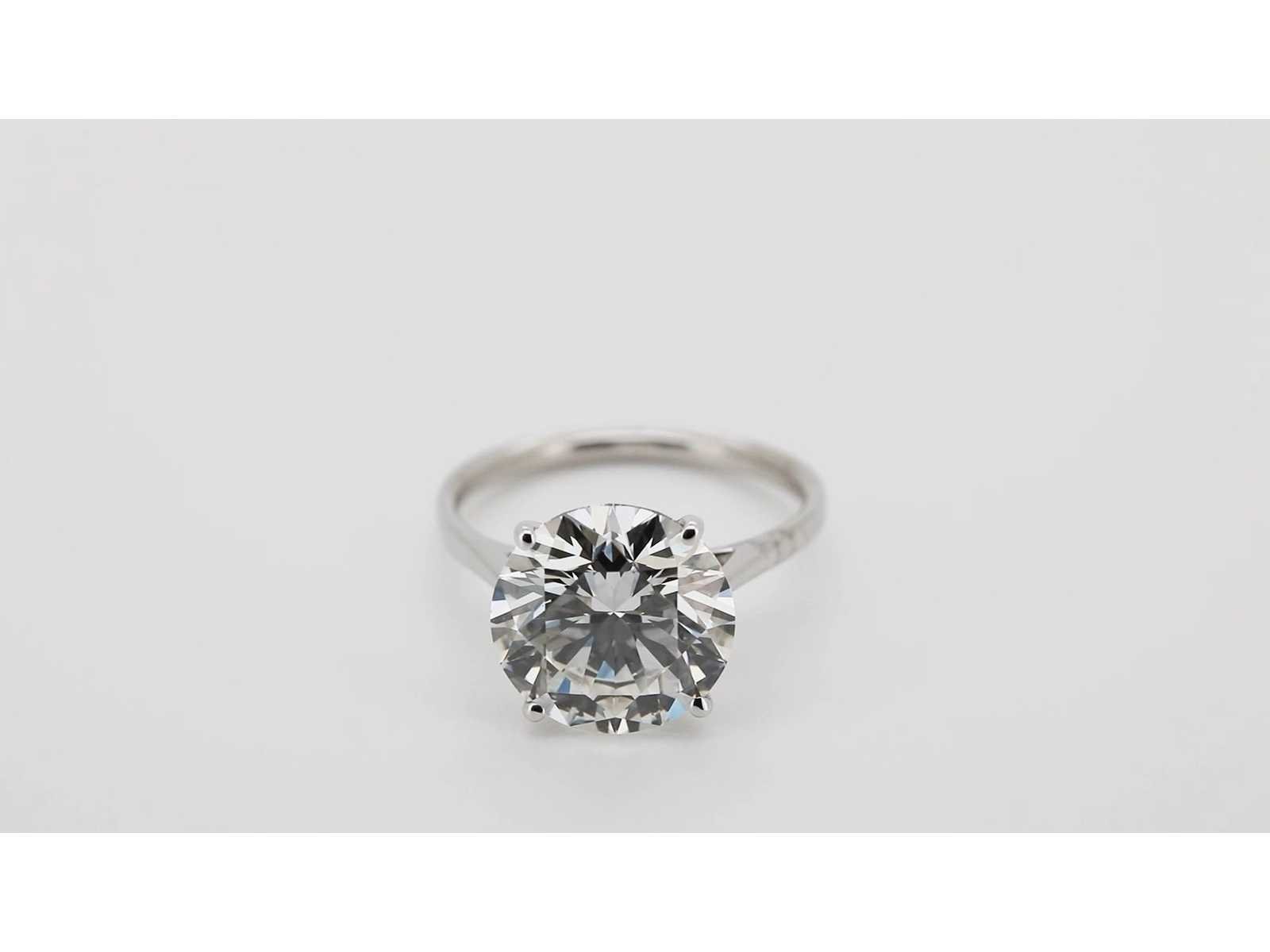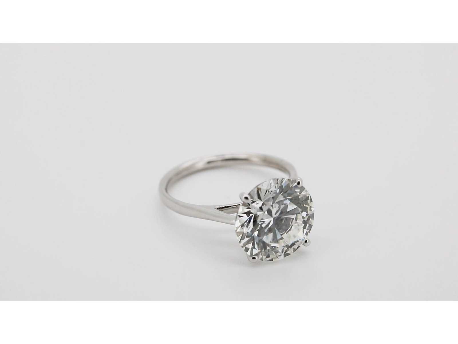 Vorm: Rond schitterend Gewicht: 5,04 ct Kleur: E Helderheid: VVS2, uitstekend Symmetrie: uitstekend Laser Inscription IGI: LG702524565 Ringgewicht: 3.60 gr. Witgoud Zuiverheid: 14 karaat (585) Bezichtiging op afspraak Materiaal: Witgoud Ringmaat : 53 Certificaat: Ja Lage schatting: 10700€