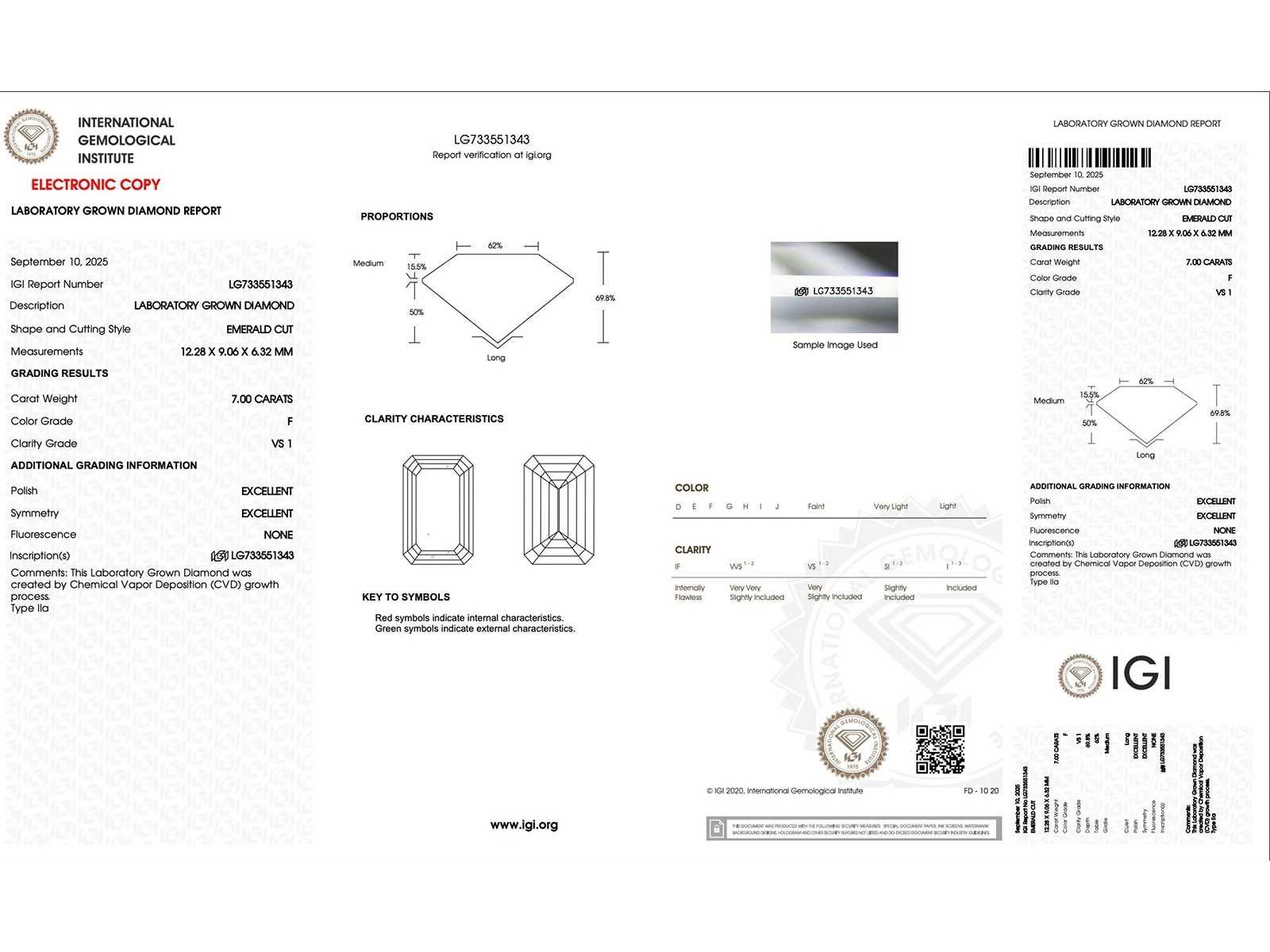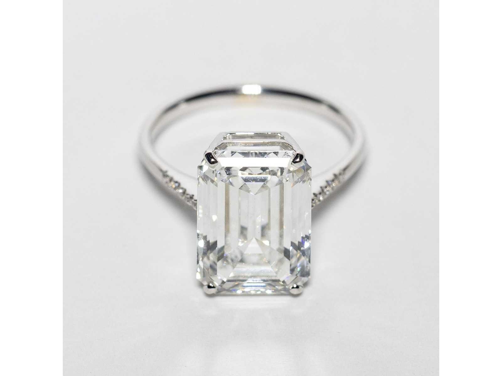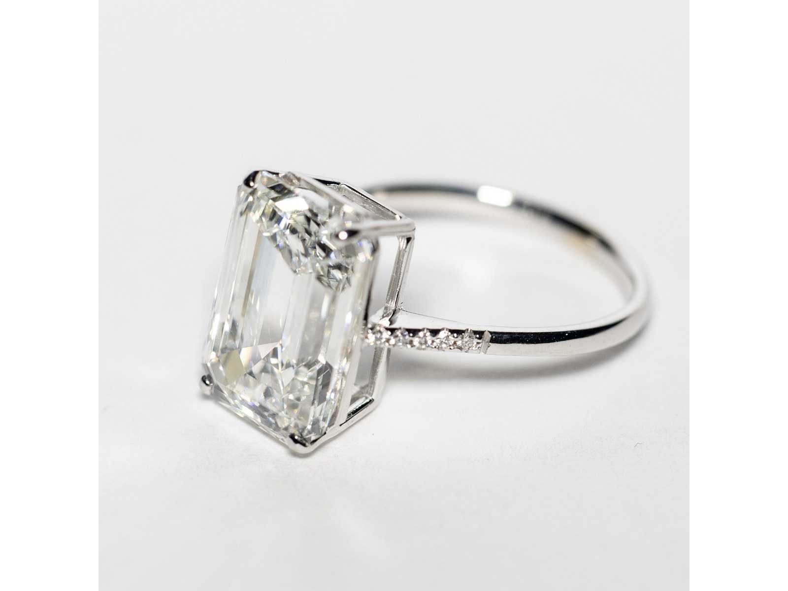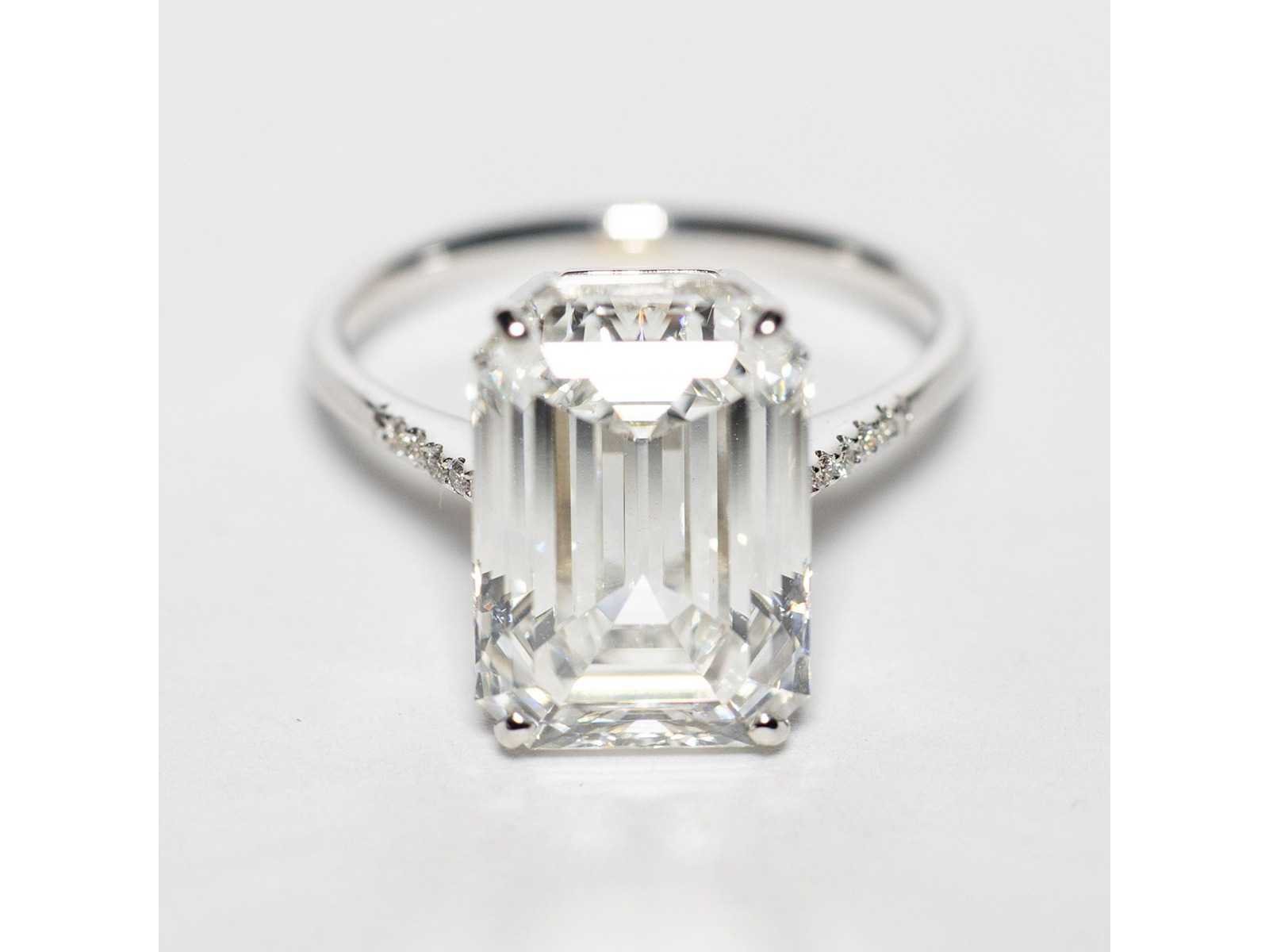 Laboratoriumrapport IGI: LG733551343 Ring in wit 18KT Maat: 14/54/6-1/2 Hoofddiamant-vorm: Smaragd Totaal: 7,05 crt. Hoofdsteen: 7,00 crt. Zijstenen: 0,05 crt. Kleur: F Snede: uitstekend Symmetrie: uitstekend Fluorescentie: geen Helderheid: VS1 Bezichtiging op afspraak Materiaal: Witgoud Ringmaat : 54 Certificaat: Ja Lage schatting: 19900€