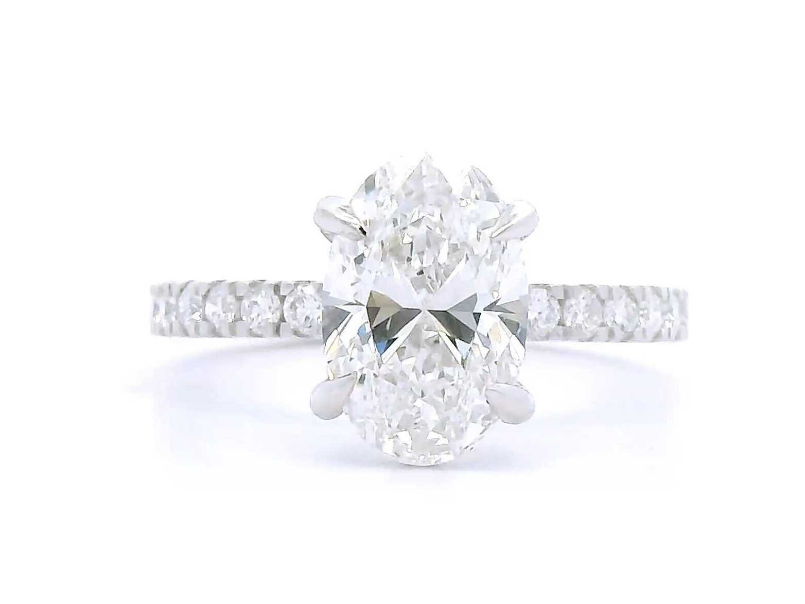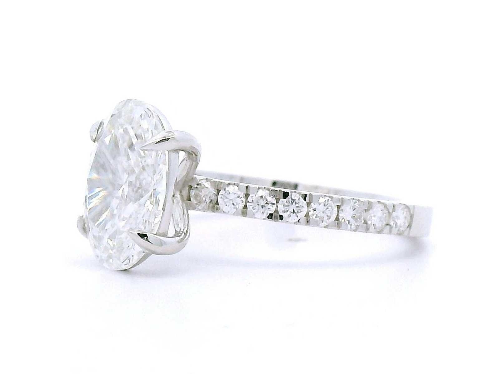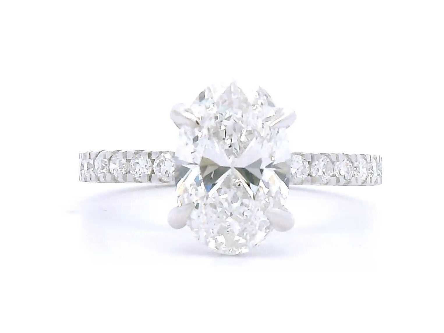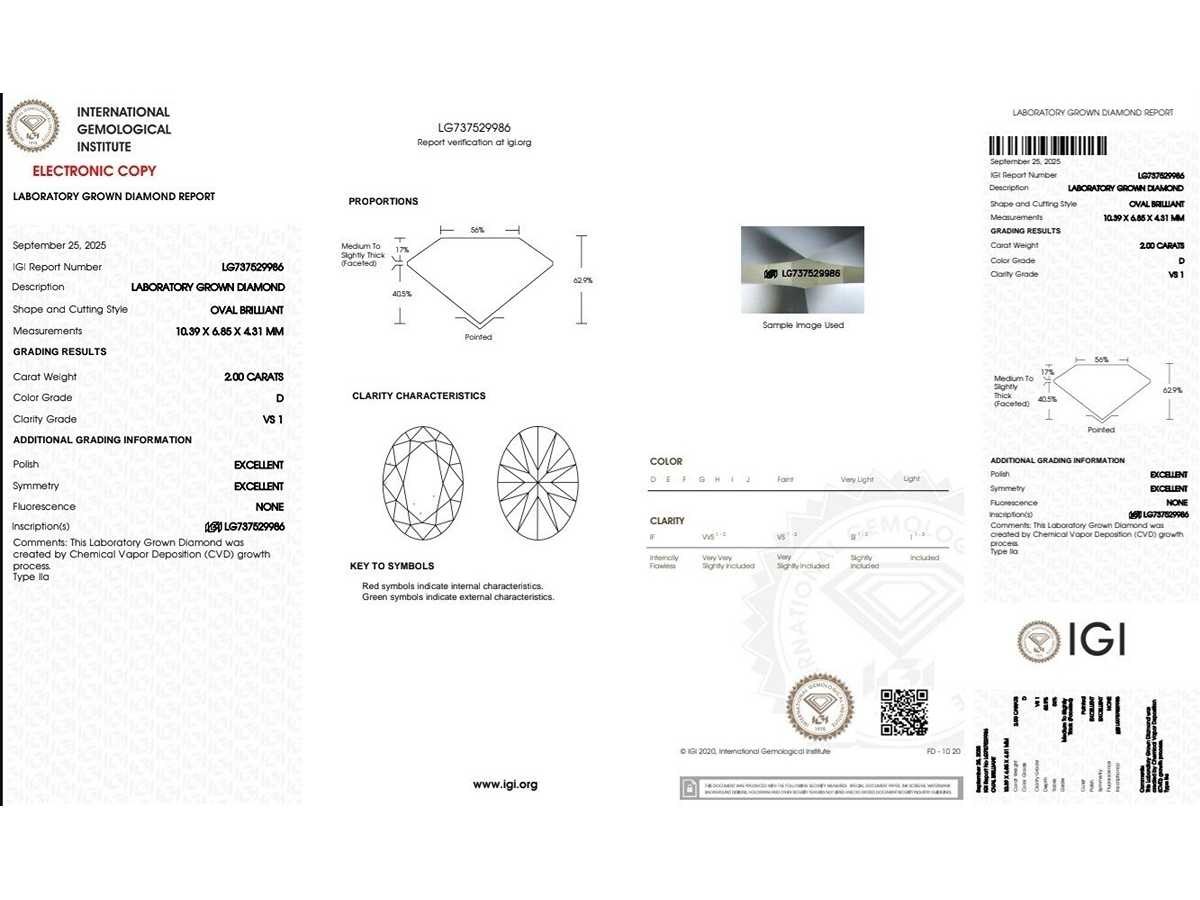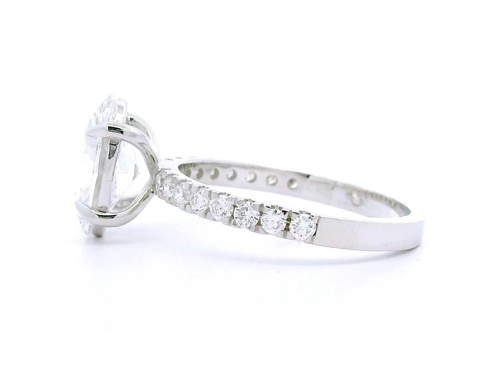 Exclusieve 18K witgouden ring Rapportnummer IGI: LG737529986 Ovale briljant Gewicht van de hoofsteen: 2,00 ct Kleur: D Helderheid: VS1 Snede: uitstekend Symmetrie: uitstekend Omringende steen - 0,35 karaat (16 stuks) Totaal karaatgewicht - 2,35 karaat We verzenden alles beveiligd en discreet via UPS. Totale ringgewicht: 2,99 gram 18K witgoud Zal worden geleverd met IGI-certificaat. Ringmaat - 53 EU / 13 IT / 6.25 US Bezichtiging op afspraak Materiaal: Witgoud Ringmaat : 53 Certificaat: Ja Lage schatting: 4100€