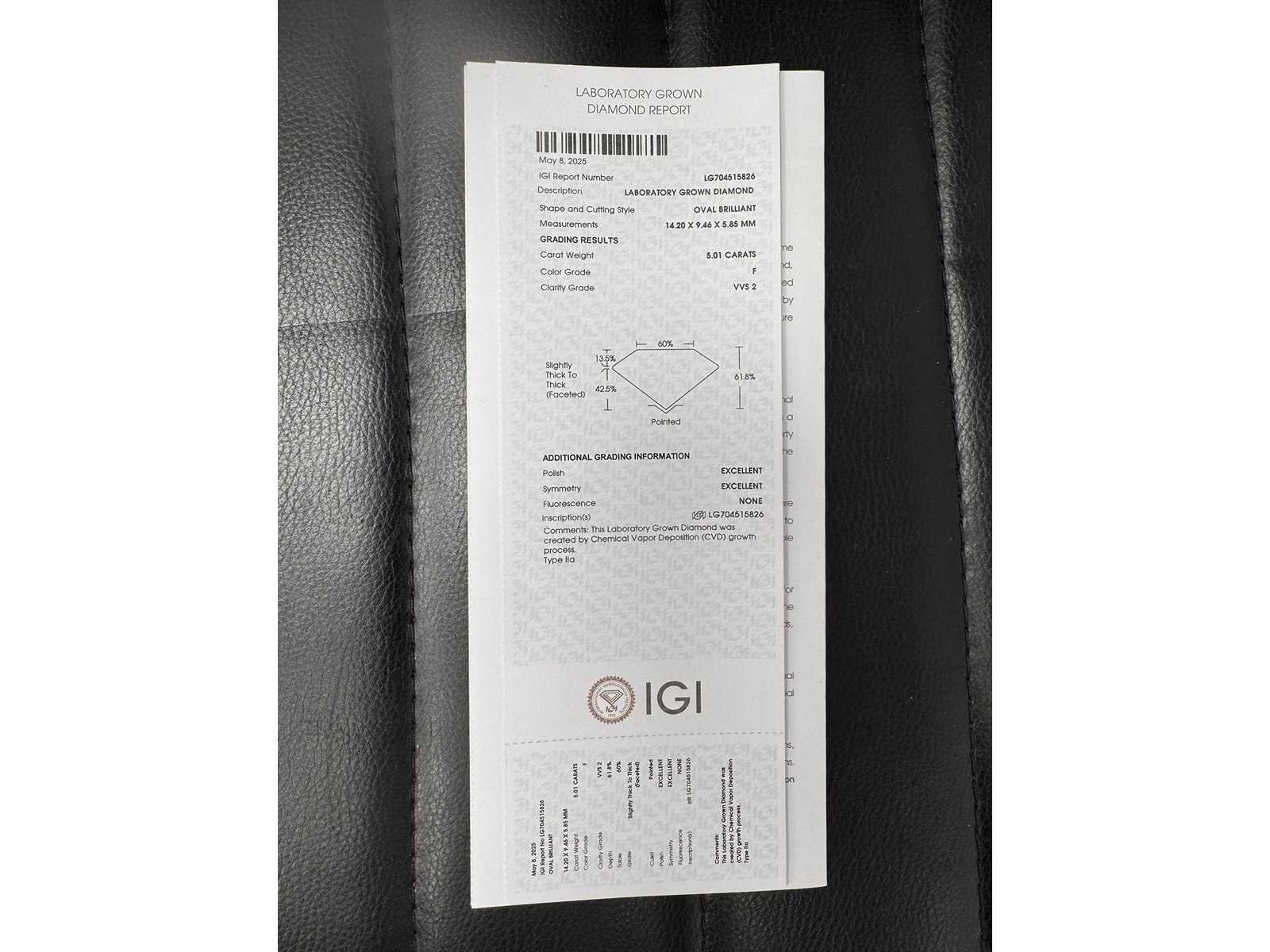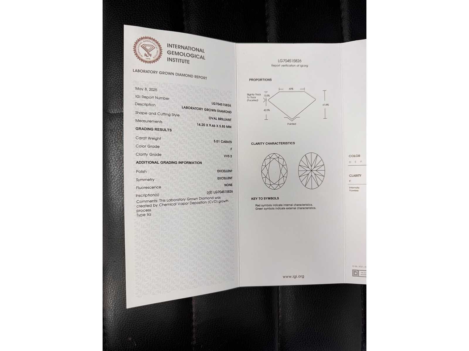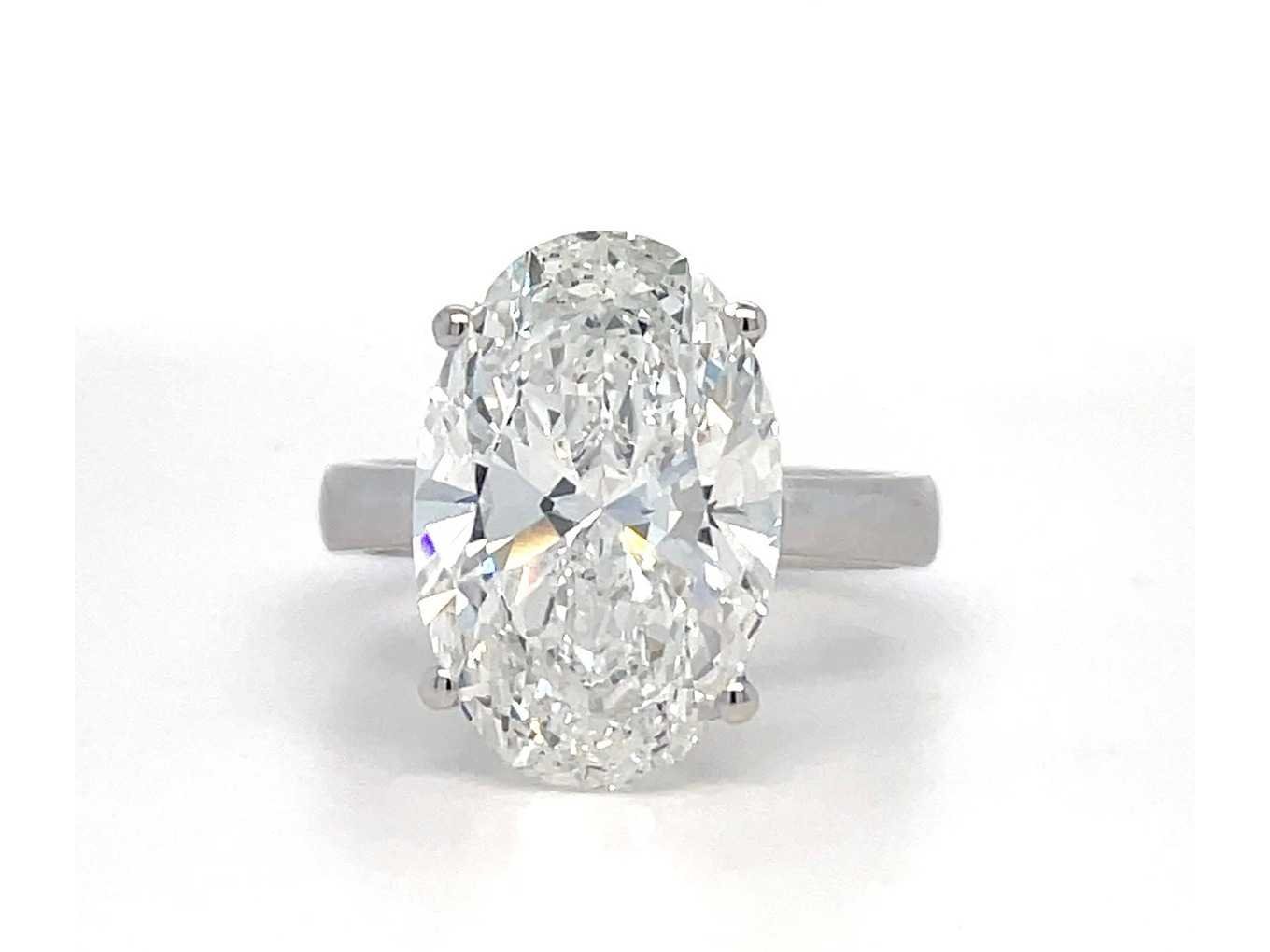 5,01 Crt. diamanten ring Vorm: ovaal F kleur - vvs2 helderheid IGI-gecertificeerd: LG704515826 Banddikte 3,6 14k witgoud Goudgewicht 4,5 g Ringmaat 54 Bezichtiging op afspraak Materiaal: Witgoud Ringmaat : 54 Certificaat: ja Lage schatting: 11300€