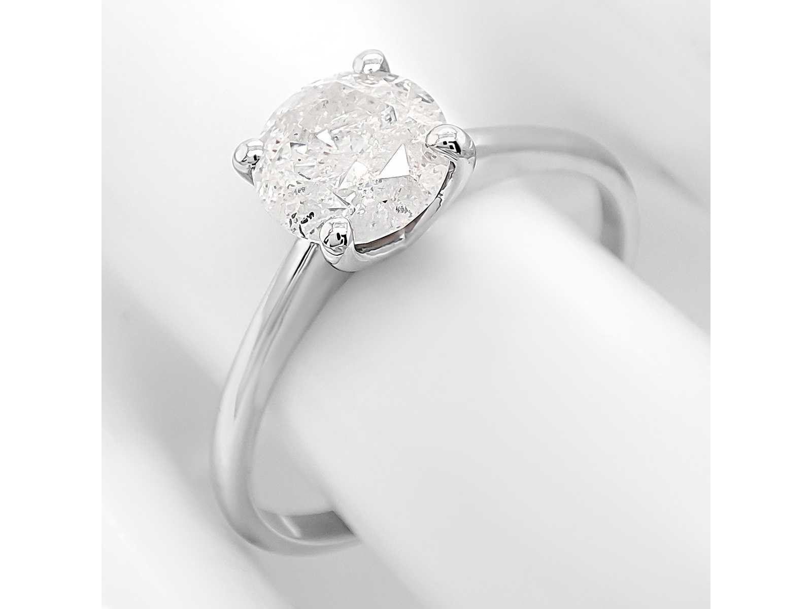 Diamantinformatie: Steensoort: natuurlijke diamant Vorm: Rond schitterend Karaatgewicht: 1,00 karaat Kleur: G Helderheid: I2 Metaal: 14 kt / gestempeld 14k Kleur: Wit Gewicht: 1,69 g Bezichtiging op afspraak Materiaal: Witgoud Ringmaat : 54 Certificaat: Ja Lage schatting: 4500€