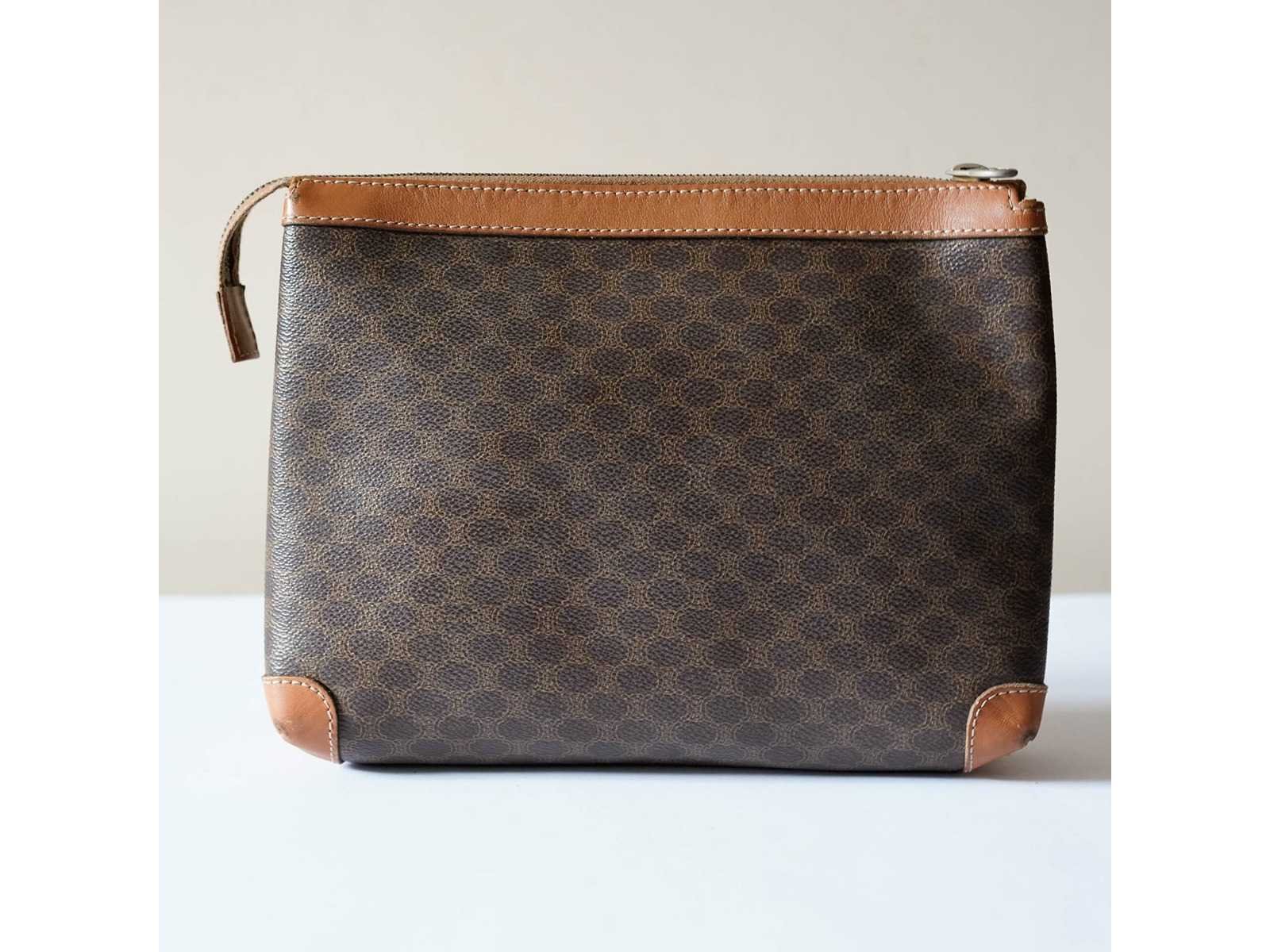 Bezichtiging op afspraak Merk: Cèline Materiaal: gecoat canvas leder Model: Clutch tas Lengte: 18cm Breedte: 27cm
