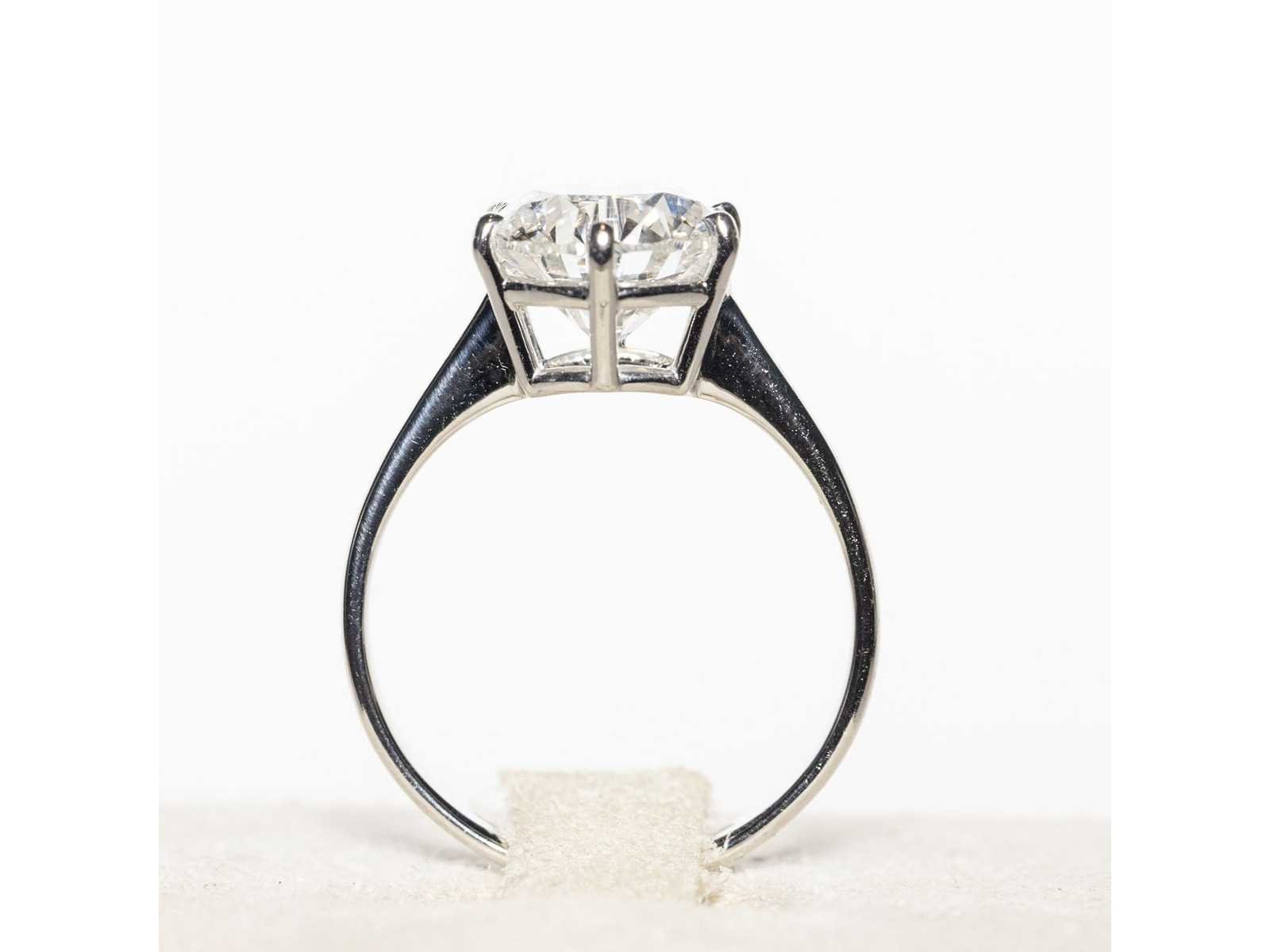 Ring in wit 18KT Maat Ring 14/54/6-1/2 Diamantvorm: Rond Grootte: 4,08 ct Kleur: E Fluorescentie: Geen Zuiverheid: VS1 Totale gewicht van de ring: 3,3 g Bezichtiging op afspraak Materiaal: Witgoud Ringmaat : 54 Certificaat: Ja Lage schatting: 7900€