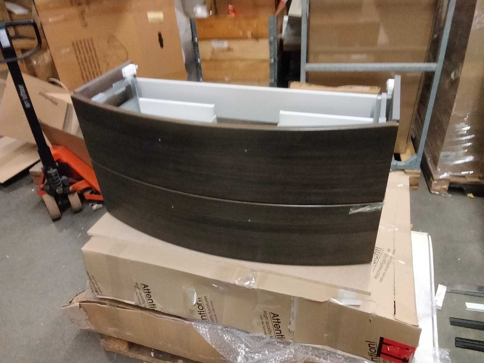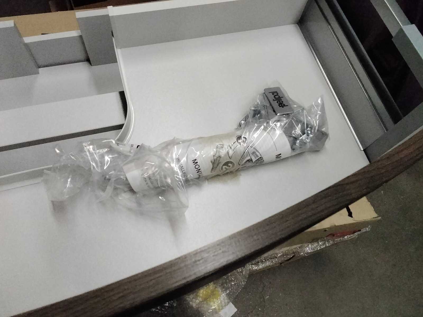 Afm. 100 cm breed 67 cm hoog, 17 cm diep. Incl. onderkast, afm. 100cm breed, 45 cm diep. Met handgrepen en softclose lades. Kleur: Bruin