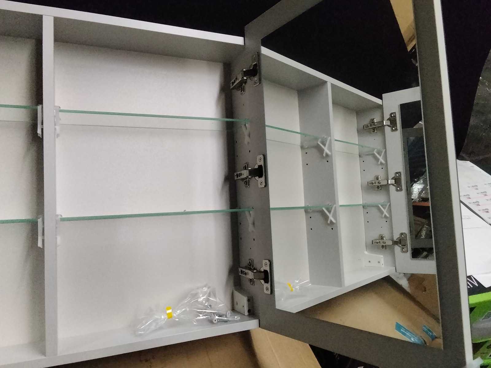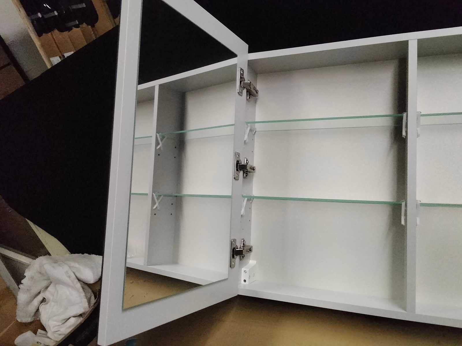 Binnenkant ook 2 spiegels. Afm. 77 cm breed, 60 cm hoog, 14 cm diep.