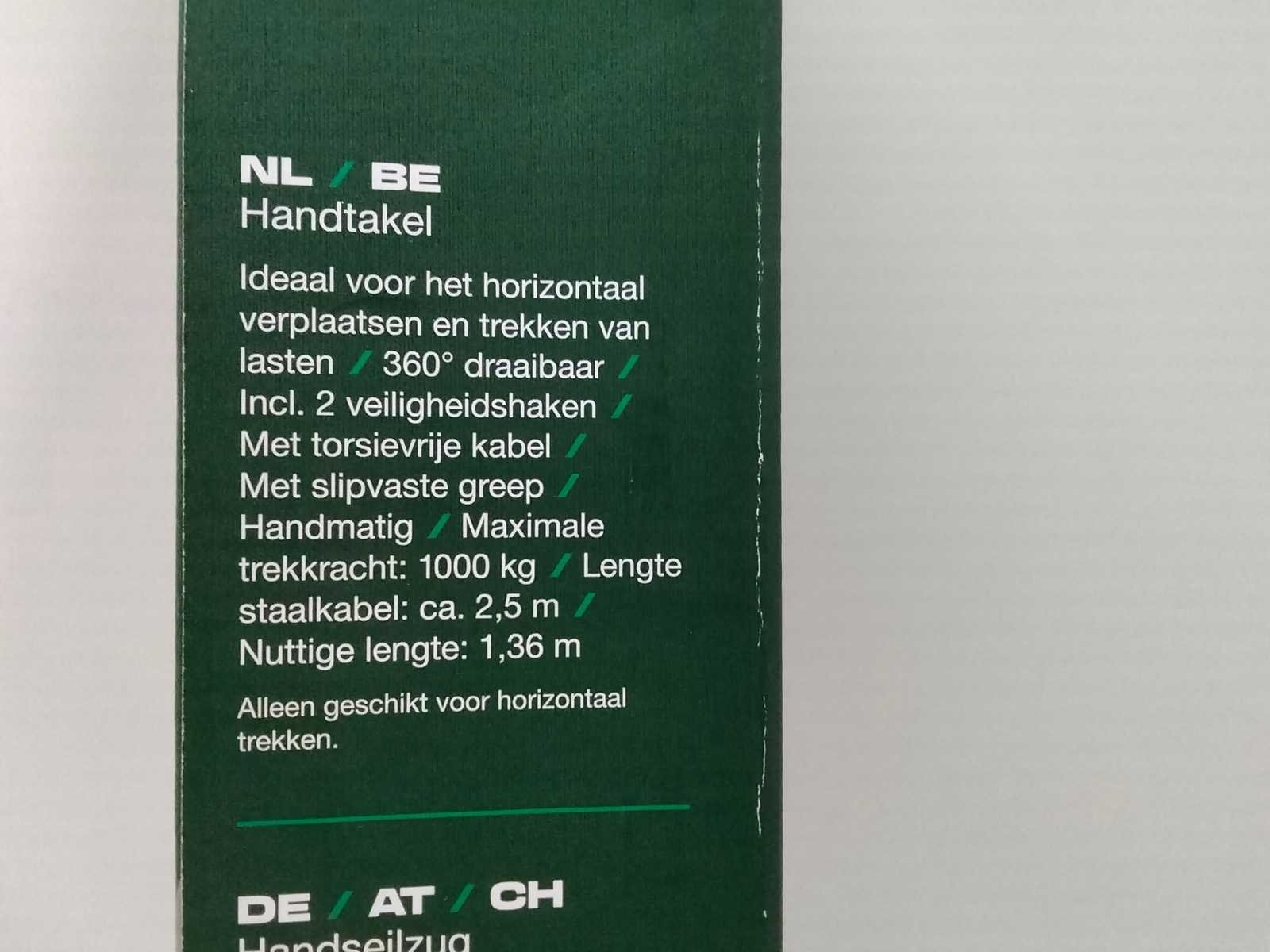 Ideaal horizontaal verplaatsen. 360 graden draaibaar. Lengte staalkabel 250 cm. Nuttige lengte 136 cm. Merk: Parkside