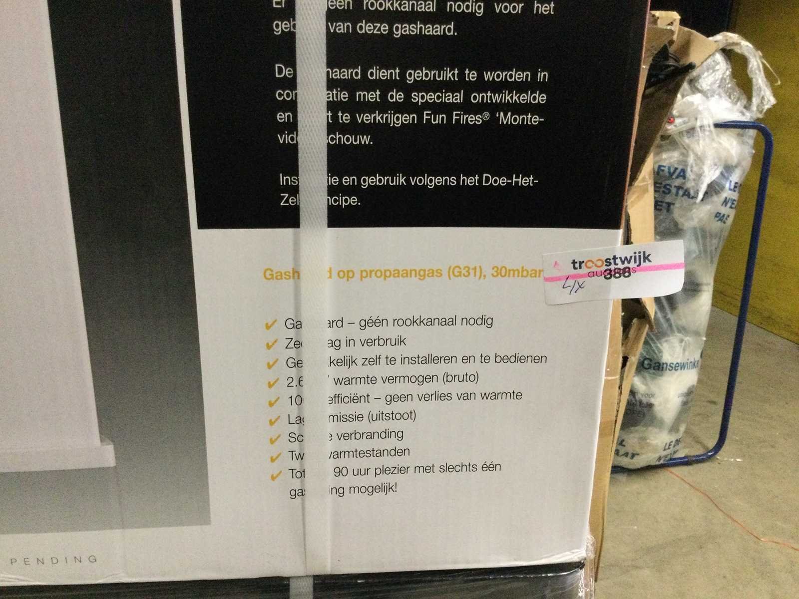 Set bestaat uit 2 dozen. Dus in totaal 8 dozen. Ombouw in doos is zwaar en groot.(133x103 cm). De Fleem productlijn biedt een gezelligheidsvuur dat zowel het interieur als tuin of terras voorziet van een warme levendige sfeer. Fleem biedt producten voor elk seizoen. Kies zelf voor een gezellige warme stijl of een moderne, strakke vormgeving. Veiligheid staat hoog in het vaandel en daarom garanderen wij dat de haarden voldoen aan de laatste veiligheidsvoorschriften. De Fleem gashaard Montevideo is een gas sfeerhaard op een gasfles dus het voordeel van een echt vlammenspel maar niet de last van het aansluiten op een vaste installatie. Deze gasfles wordt niet meegeleverd, benodigd propane, gas met een druk van 30mB (G-31). De haard heeft 2 warmte standen met hoog 2,6 kW en laag 1,6 kW Merk: Fun Fires Model: Montevideo Brandstof: Lpg gasfles Kleur: Wit/zwart Lengte: 53 Breedte: 131 Hoogte: 104,3