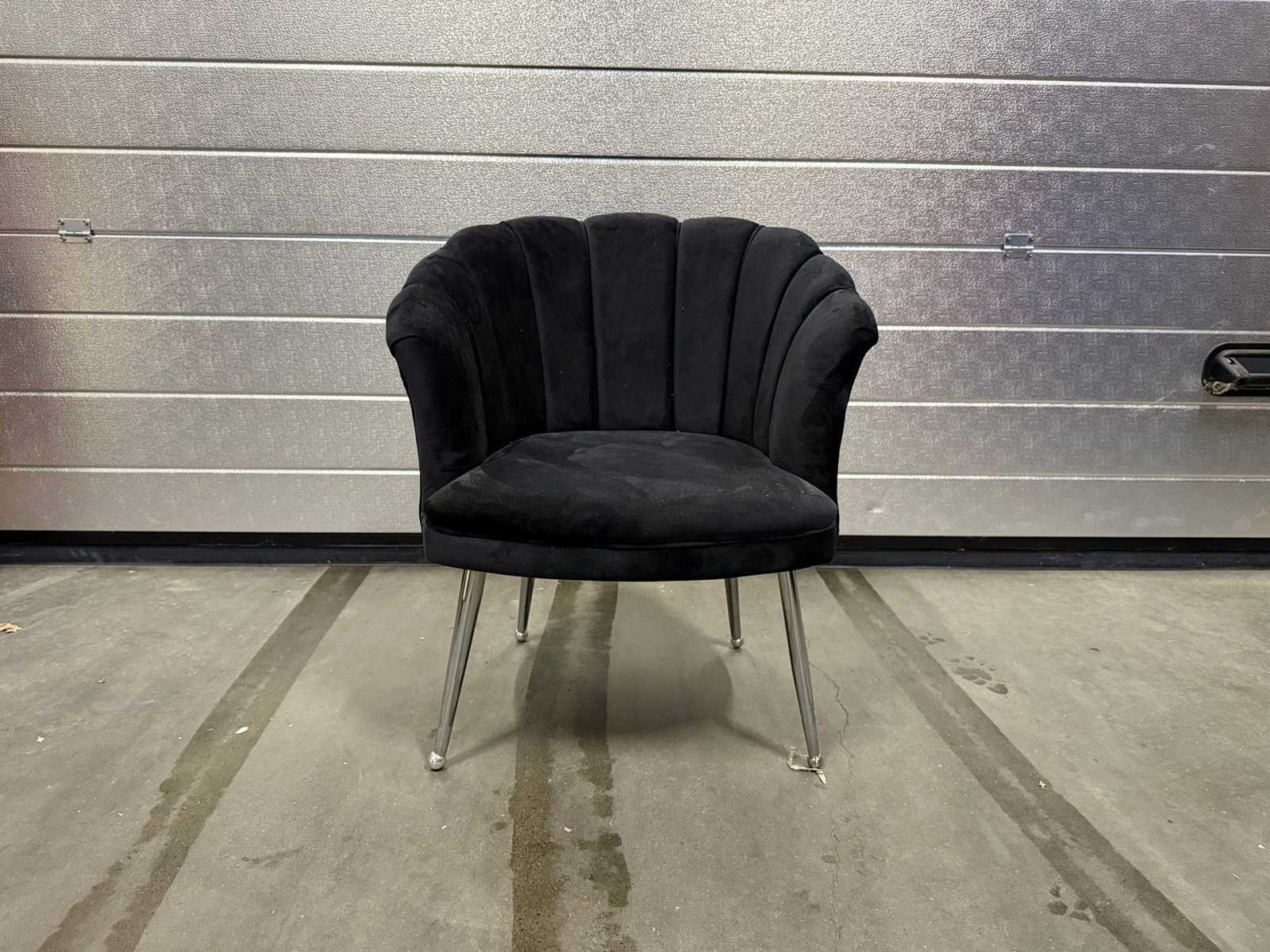 Een mooie velvet stof schelp fauteuil Kleur: Zwart