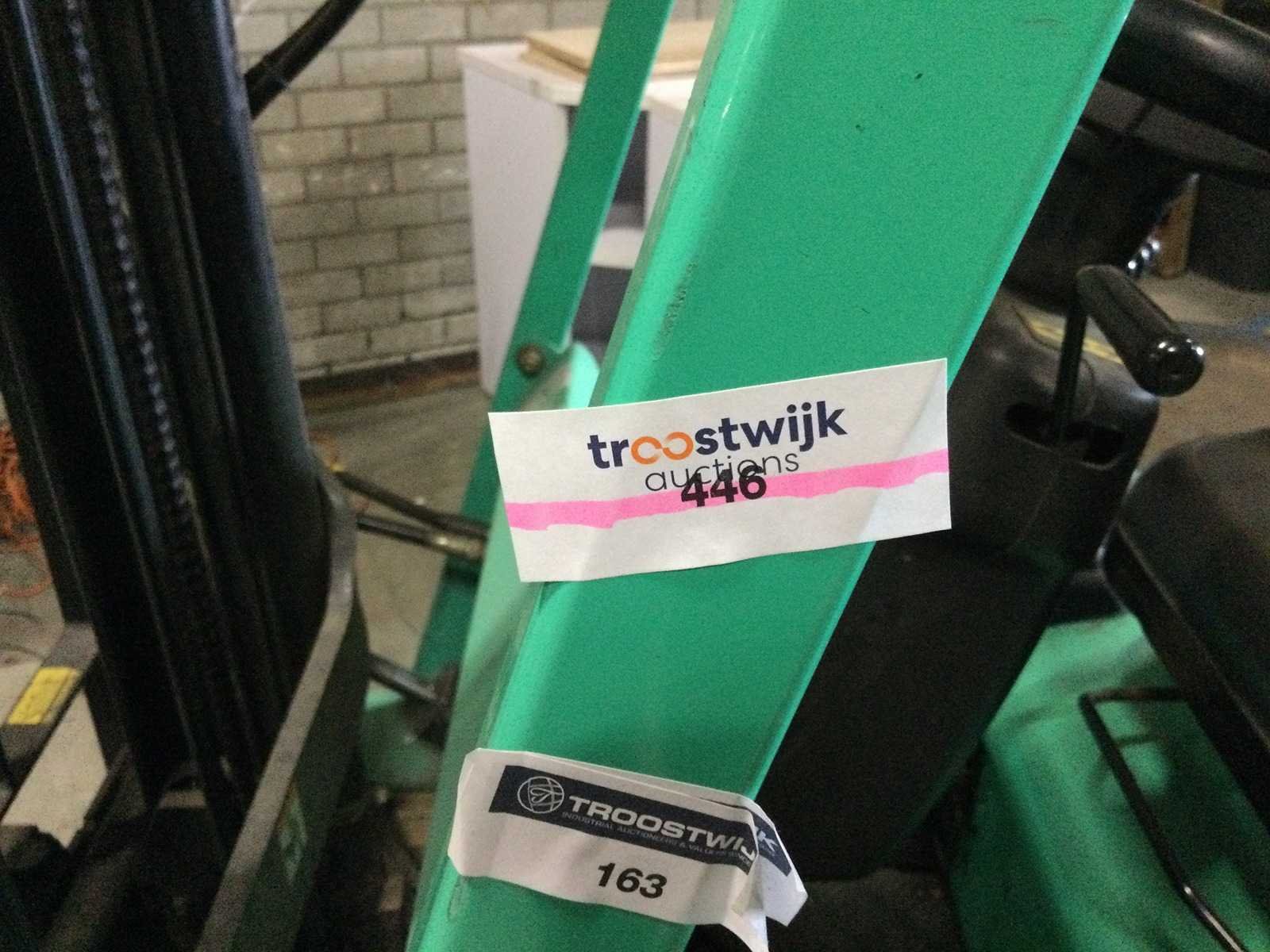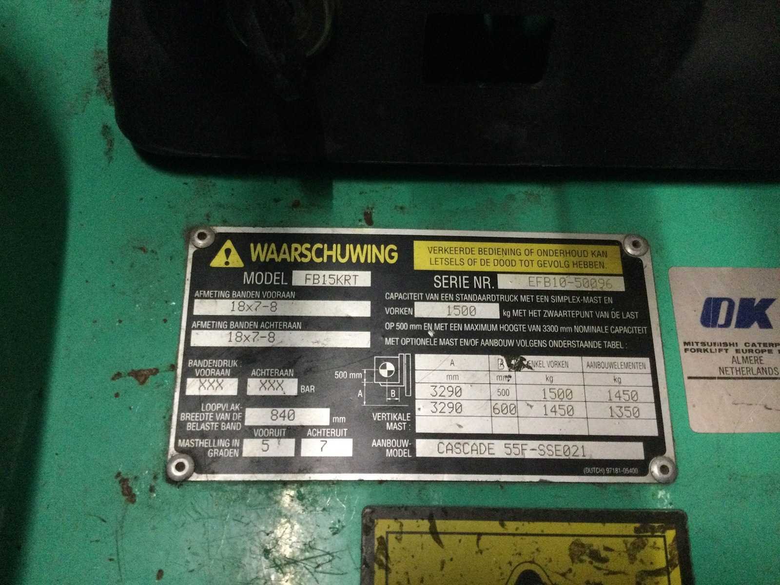 Er zit een nieuwe accu in. Niet gecontroleerd. Merk: Mitsubishi Type: FB 15 KRT Brandstof: Elektrisch Aantal wielen: 3