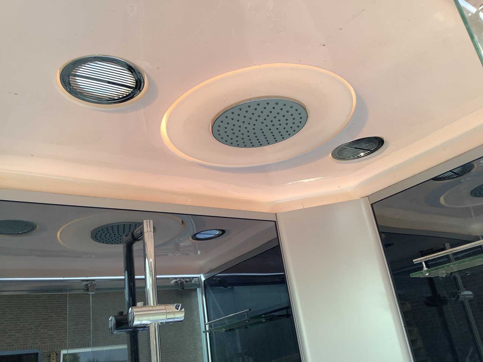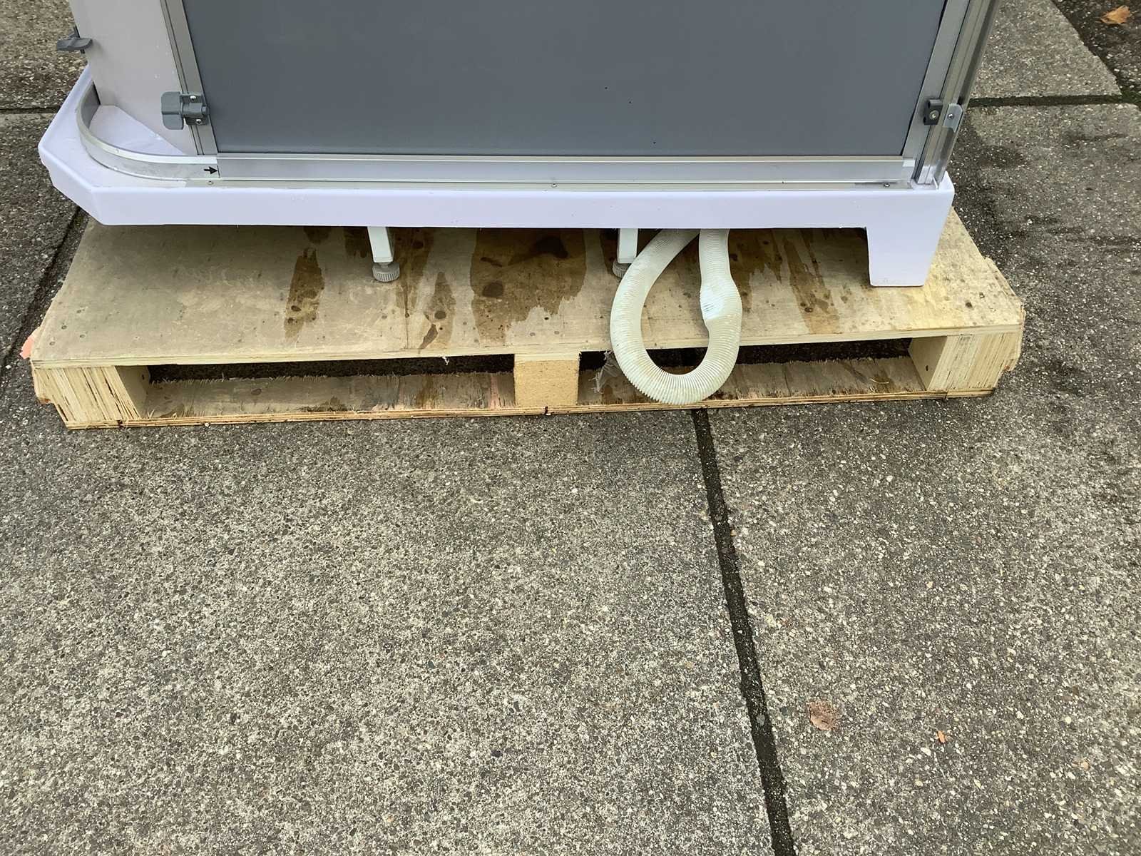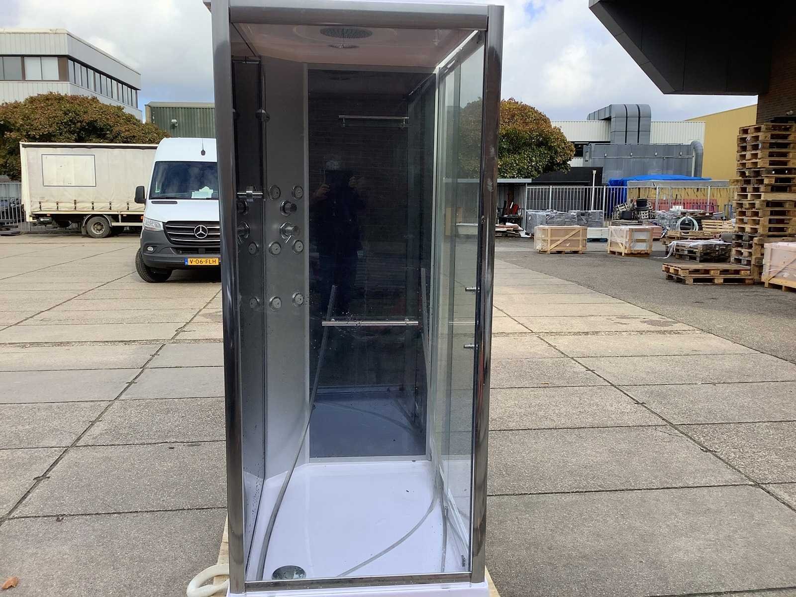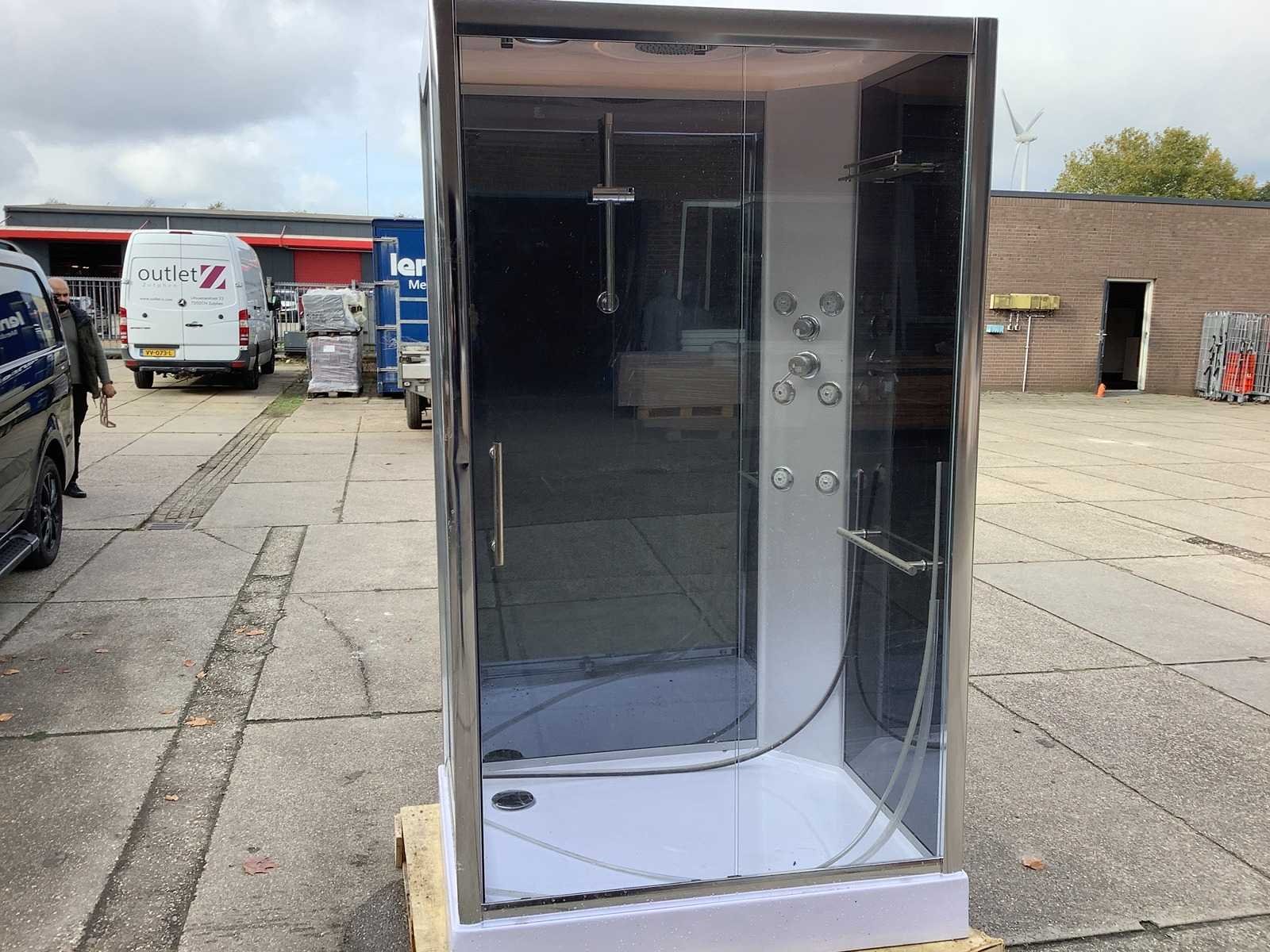 Ongecontroleerd. Afm. 117 cm breed, 90 cm diep en hoog 210 cm. Lengte: 90cm Breedte: 117cm Hoogte: 210cm Materiaal: Kunststof/glas