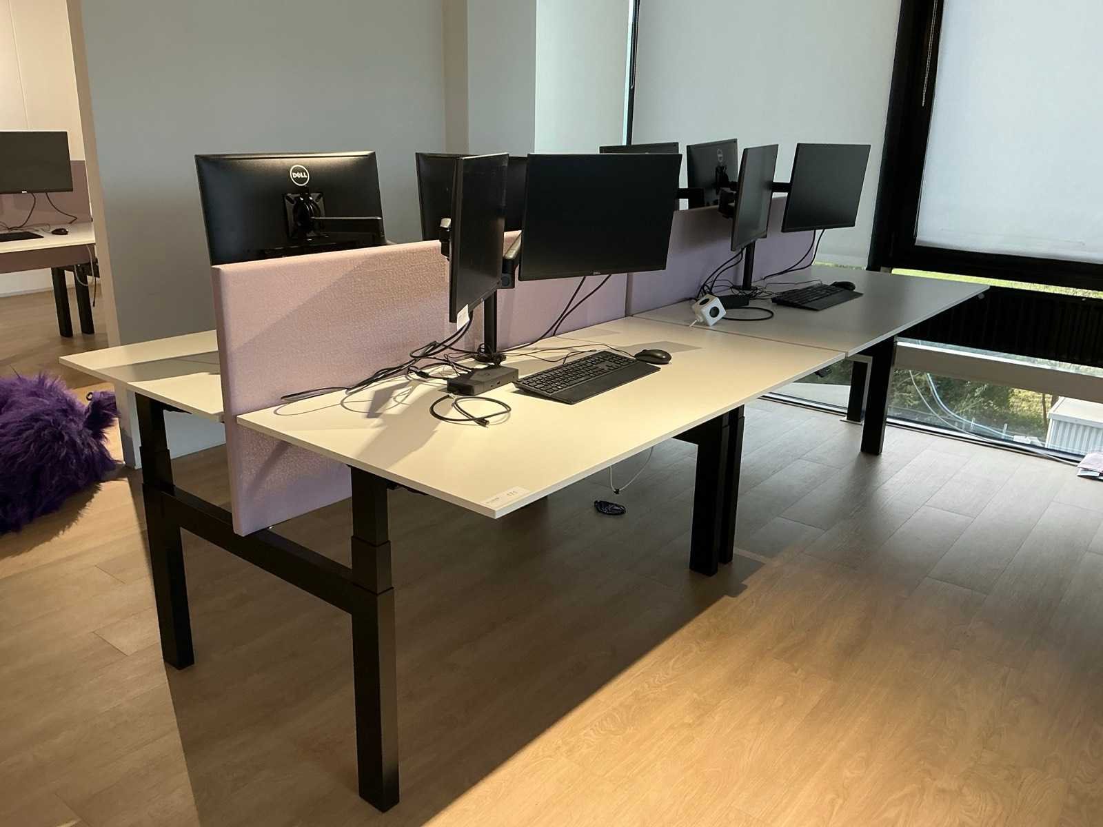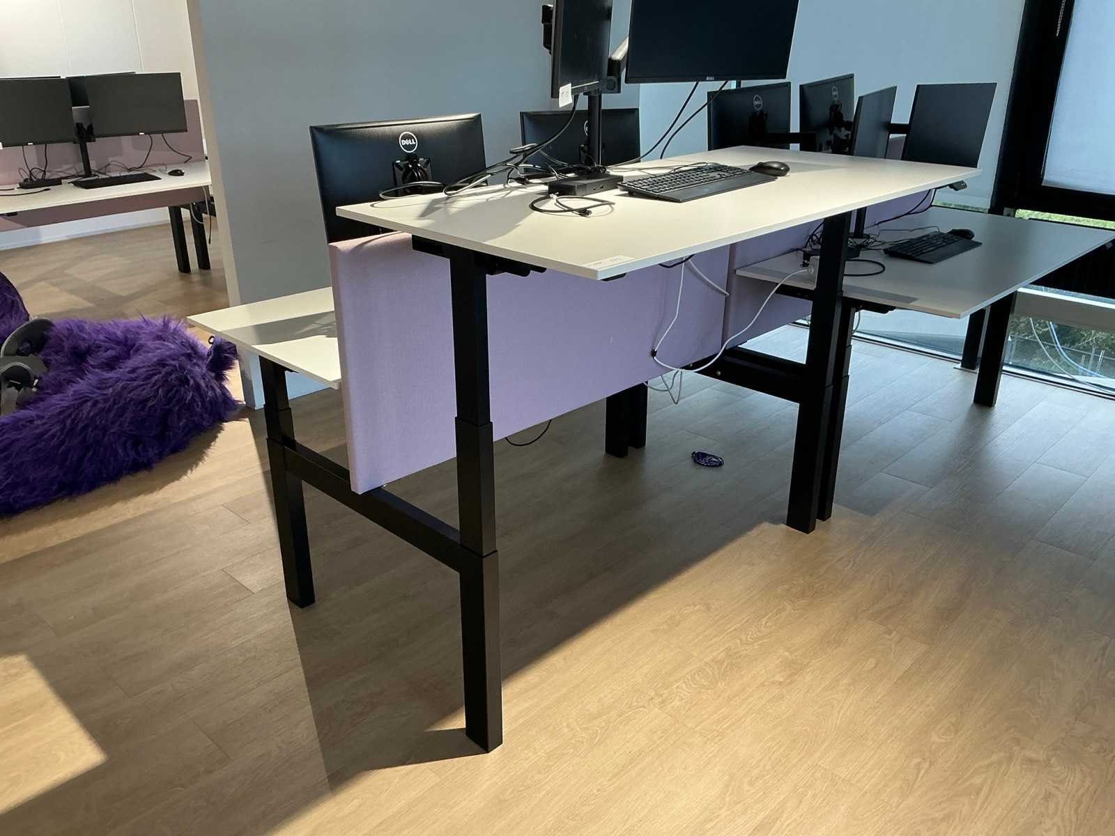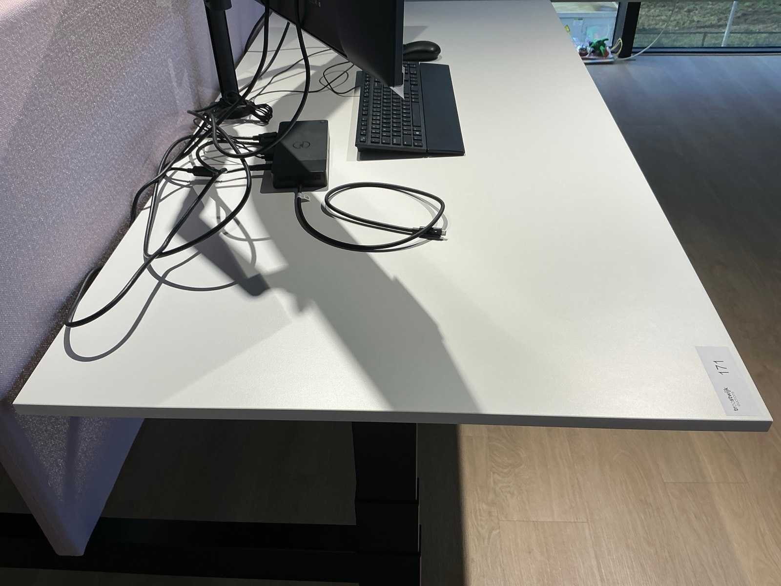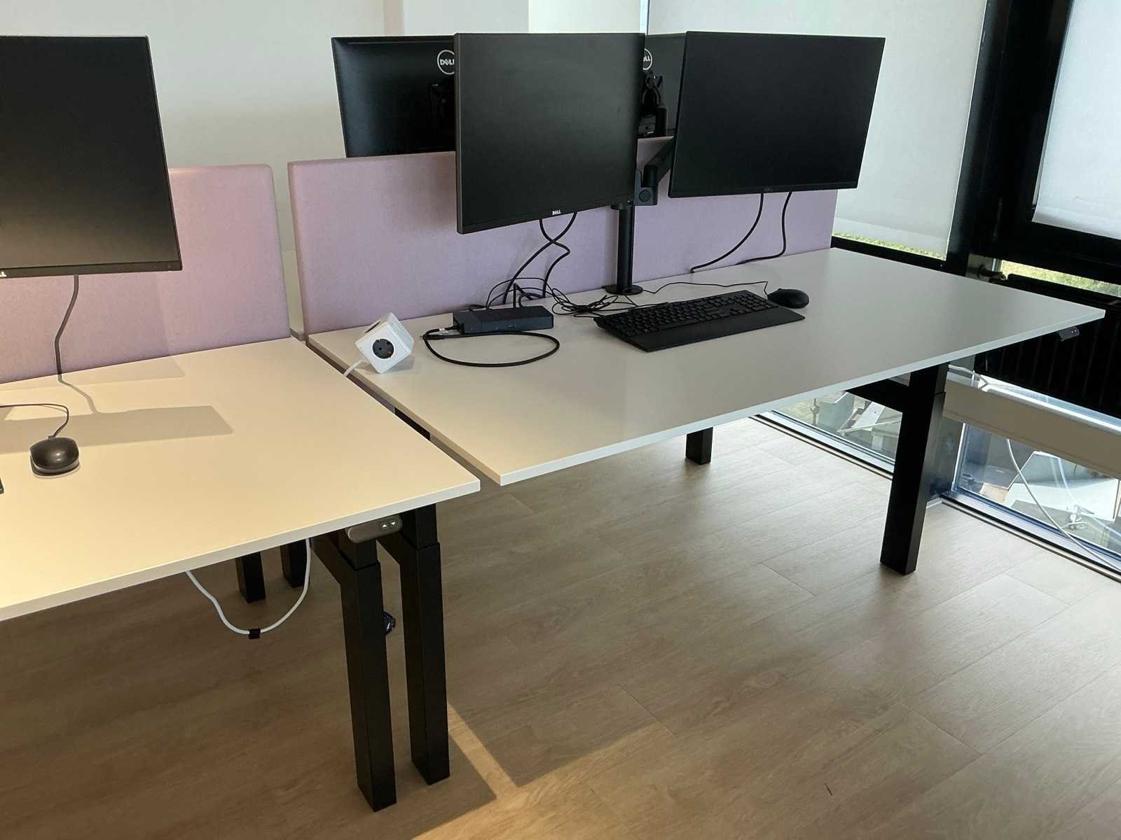 Kavel bestaat uit 2x Duo werkplek (160x80cm afmeting per bureau), elektrisch in hoogte verstelbaar tot 130cm hoogte, met tussenschot. Monitoren met beugels, keyboards en dockingstations niet inbegrepen. Inclusief 1x extra tussenschot Merk: Drentea Type: Presto R zs inline Kleur: Wit Lengte: 160cm Breedte: 168cm Hoogte: 121cm