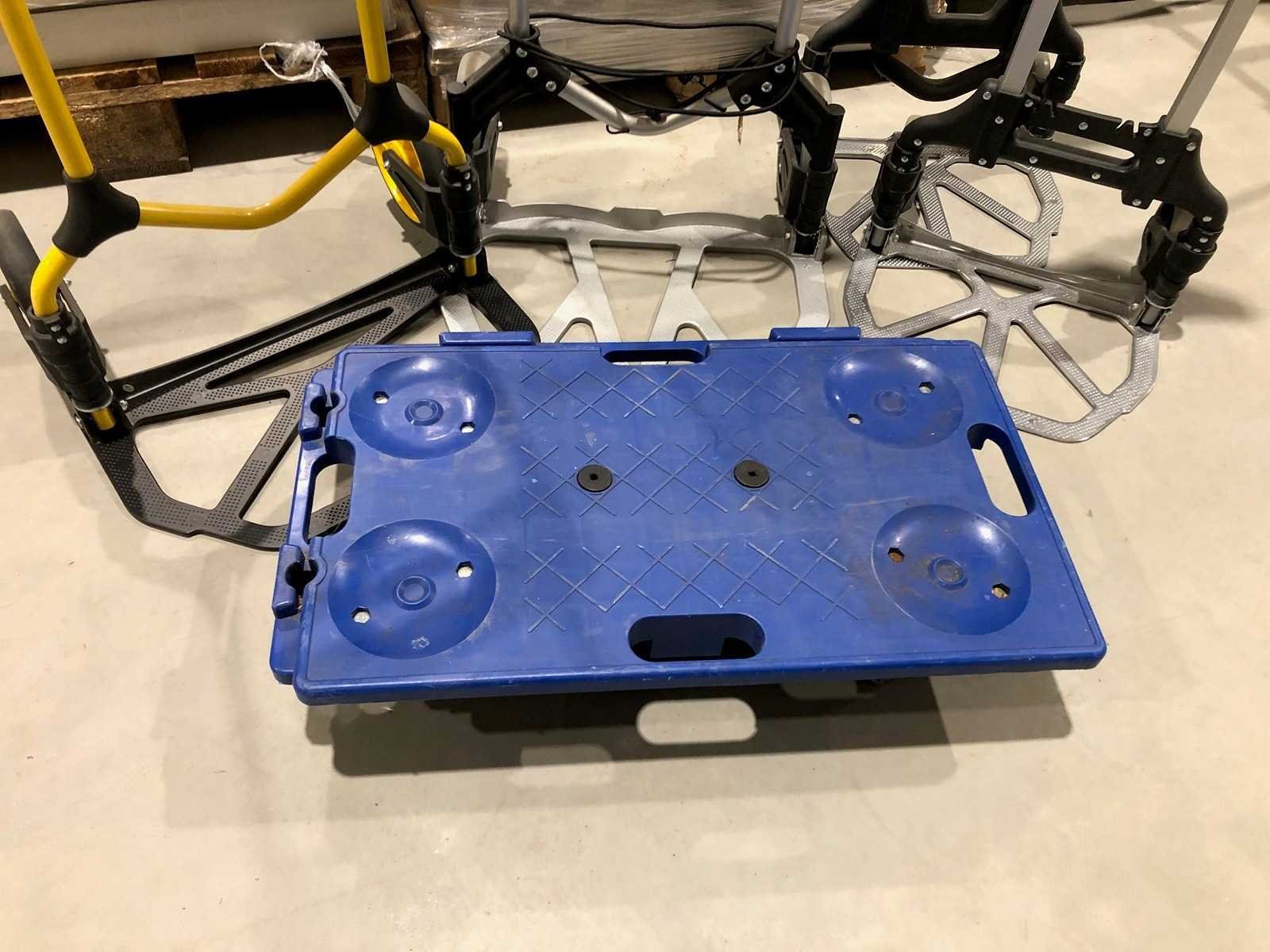 4 gebruikte nog prima werkende opklapbare steekwagens 1 Matador kunststof Dolly Massieve banden: true