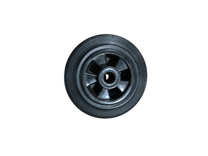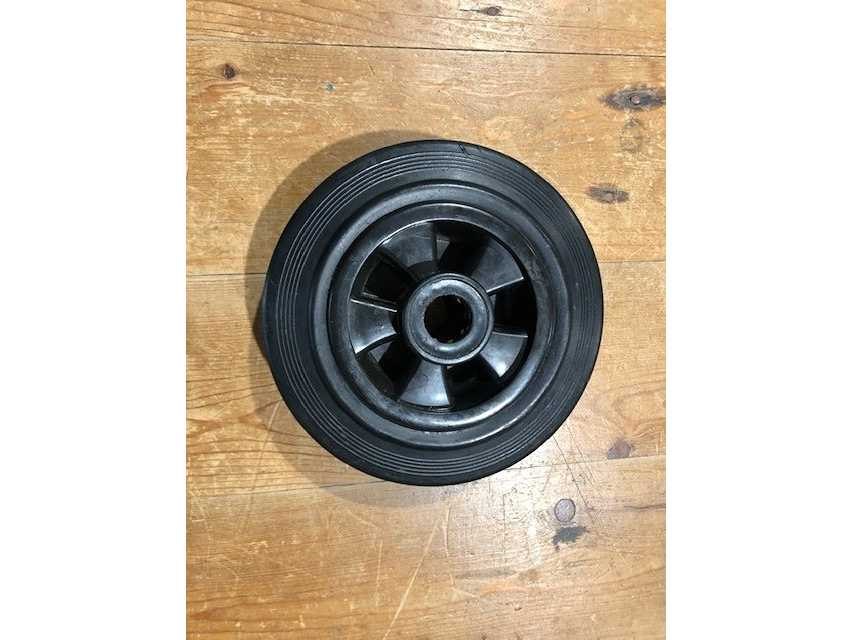 Volgummi wiel inclusief kunststof velg. 160 mm doorsnede asgat 20 mm Naaflengte 60 mm Rollager Inclusief Europallet Bandenmaat: 160mm